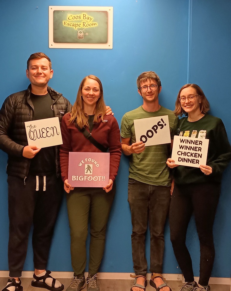 Finally, we make our way to Coos Bay for our first stop outside of California. No trip to meet with Dr Schab and Dr Banducci would be complete without an escape room, which was thoroughly crushed – turns out bigfoot is in cryo storage somewhere in southwest Oregon, who knew? There’s lots more to mention (forced berry picking labor, crabbing, etc.) but maybe Rachel can fill those parts out later…