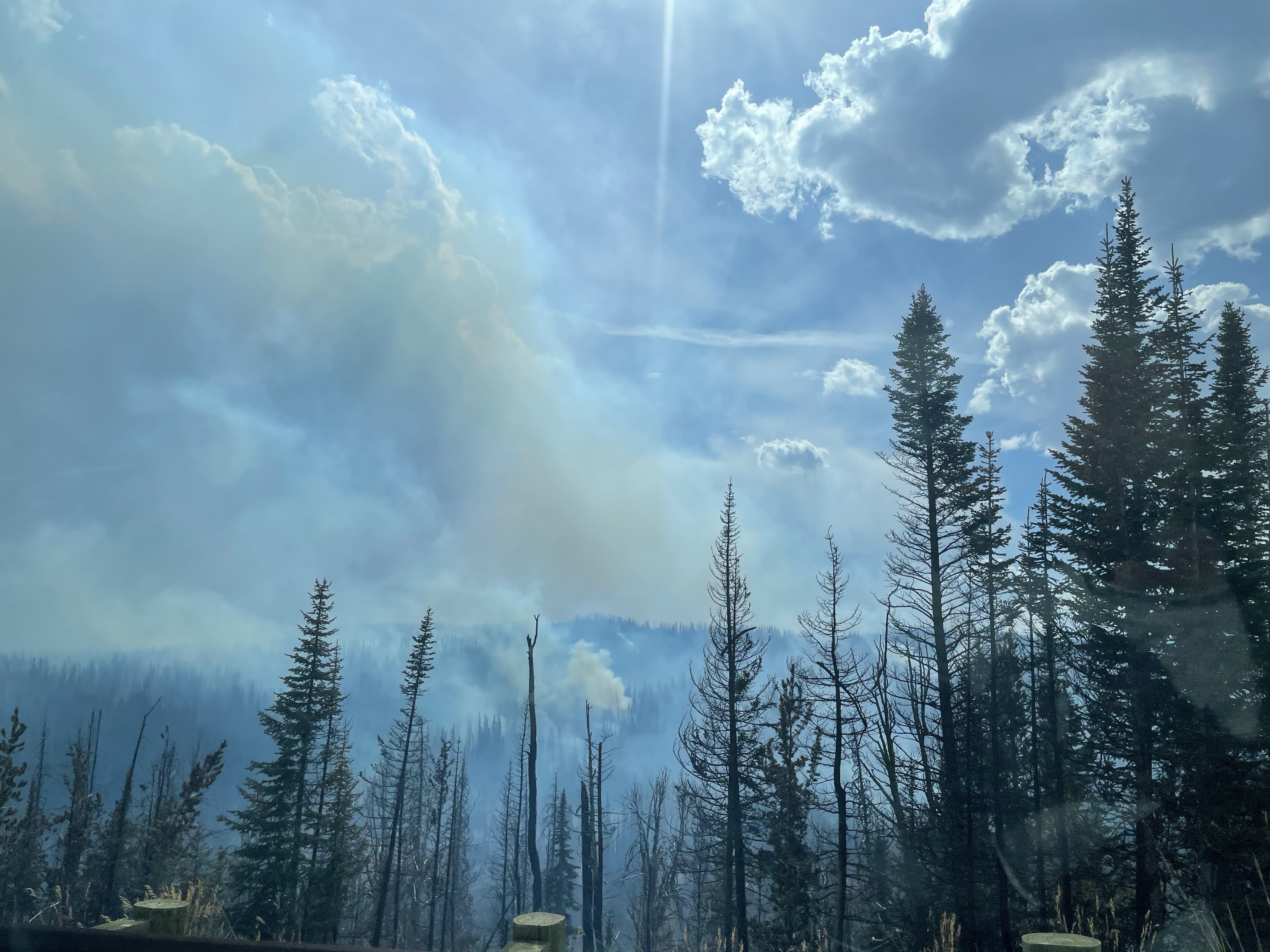 After we woke up the next day, it was time to get on the road to South Dakota where we planned to visit Mt. Rushmore and Badlands before we wrapped up the northern national park trip and started heading down into the heartland of America – Arkansas. Much to our surprise, Wyoming chose self-immolation instead and we ended up driving ~50 miles through the lightning induced wildfire starting to consume Teton National Forest. Luckily it seems this fire hasn’t harmed anyone yet, but by the look of the roadsides containment won’t be easy…