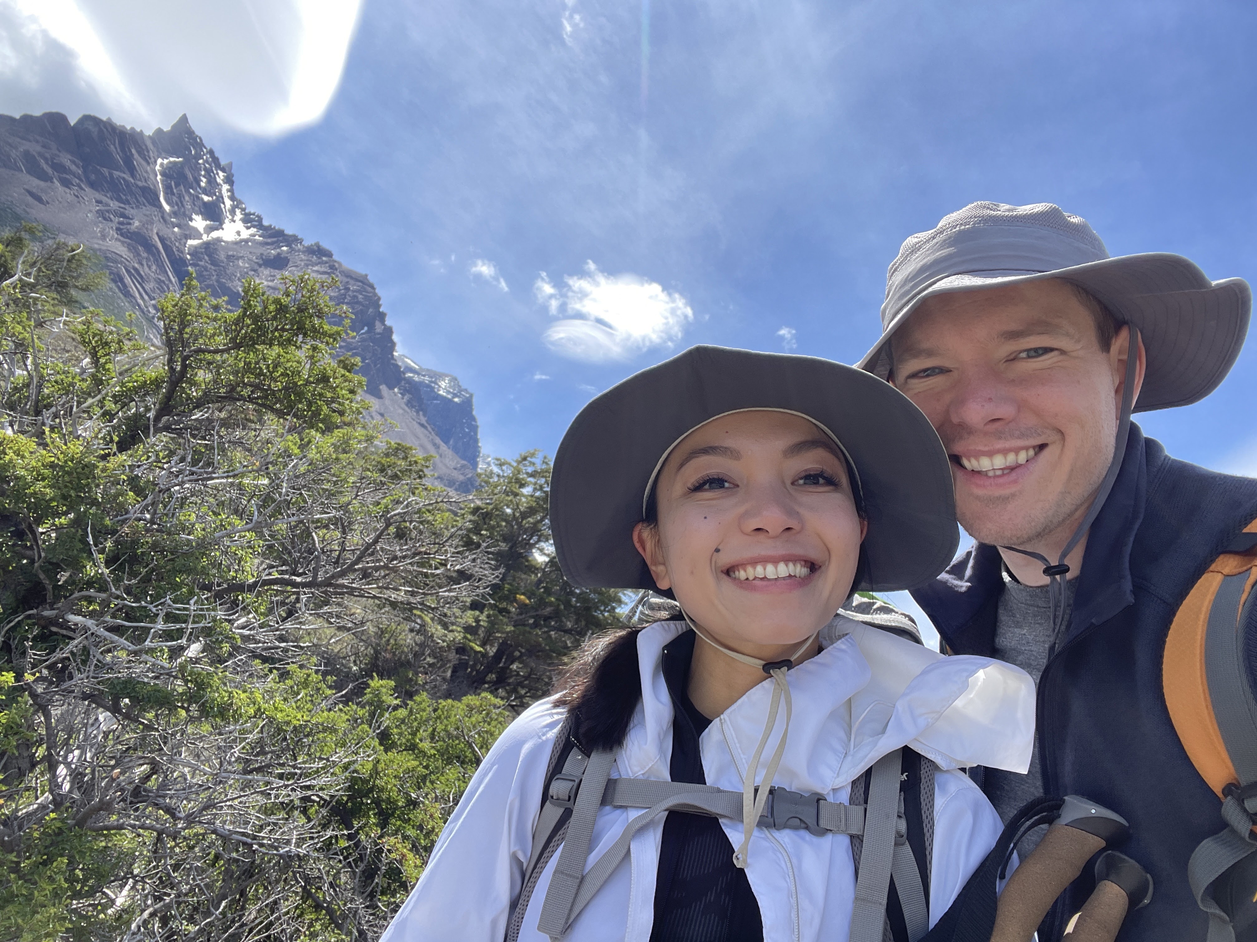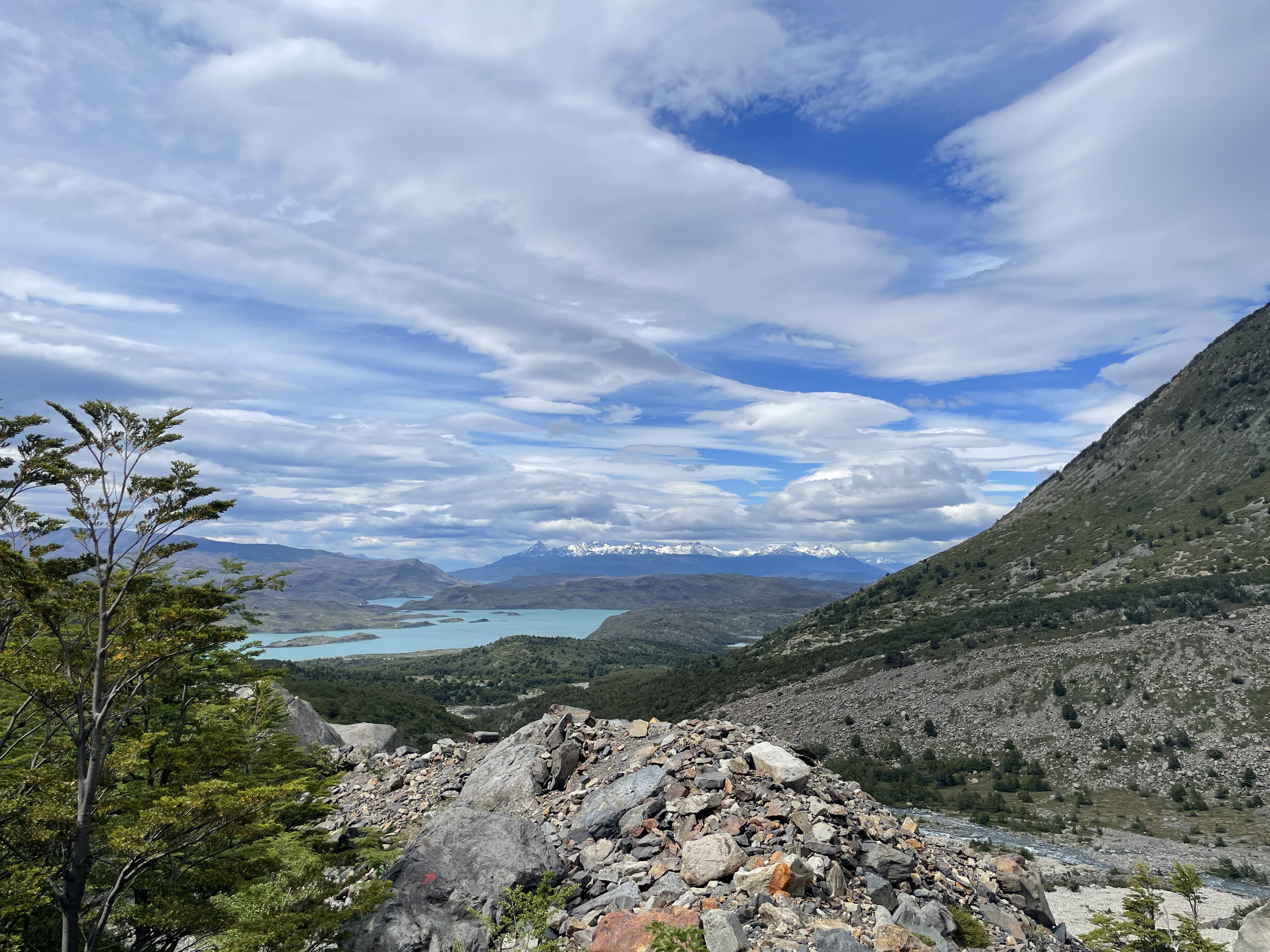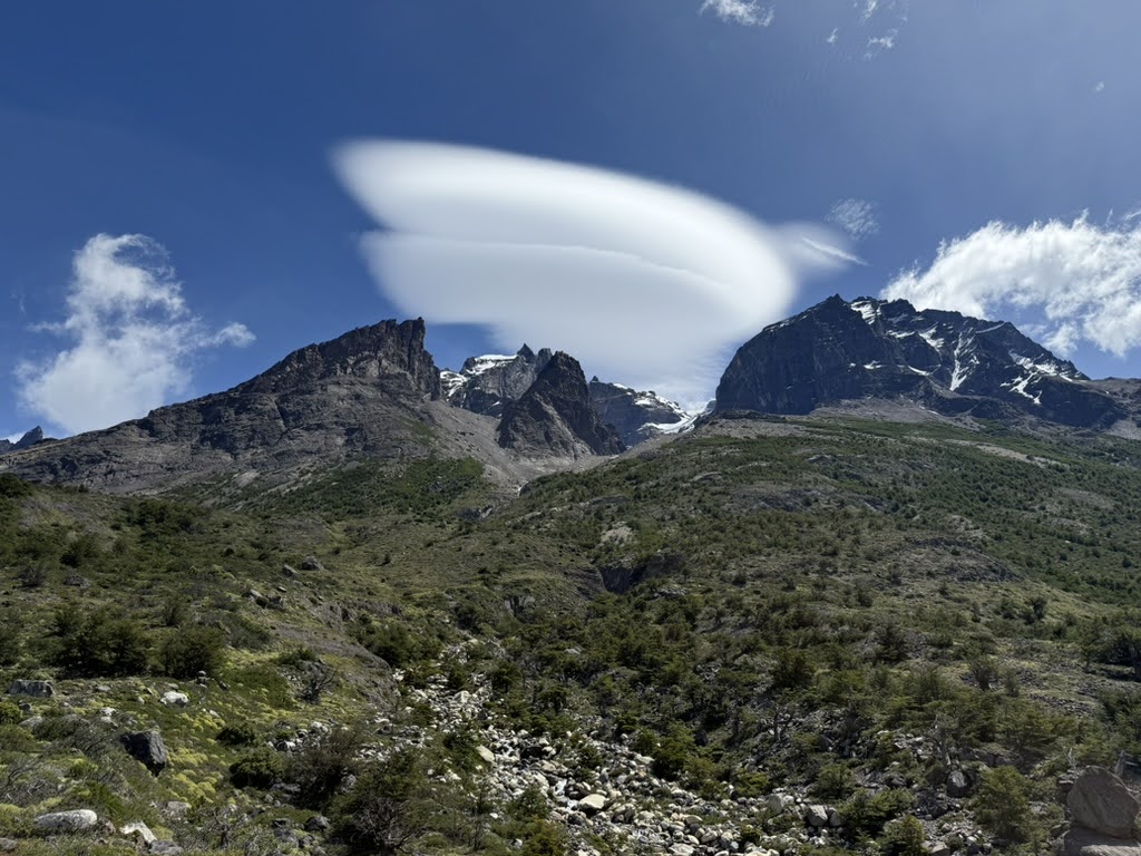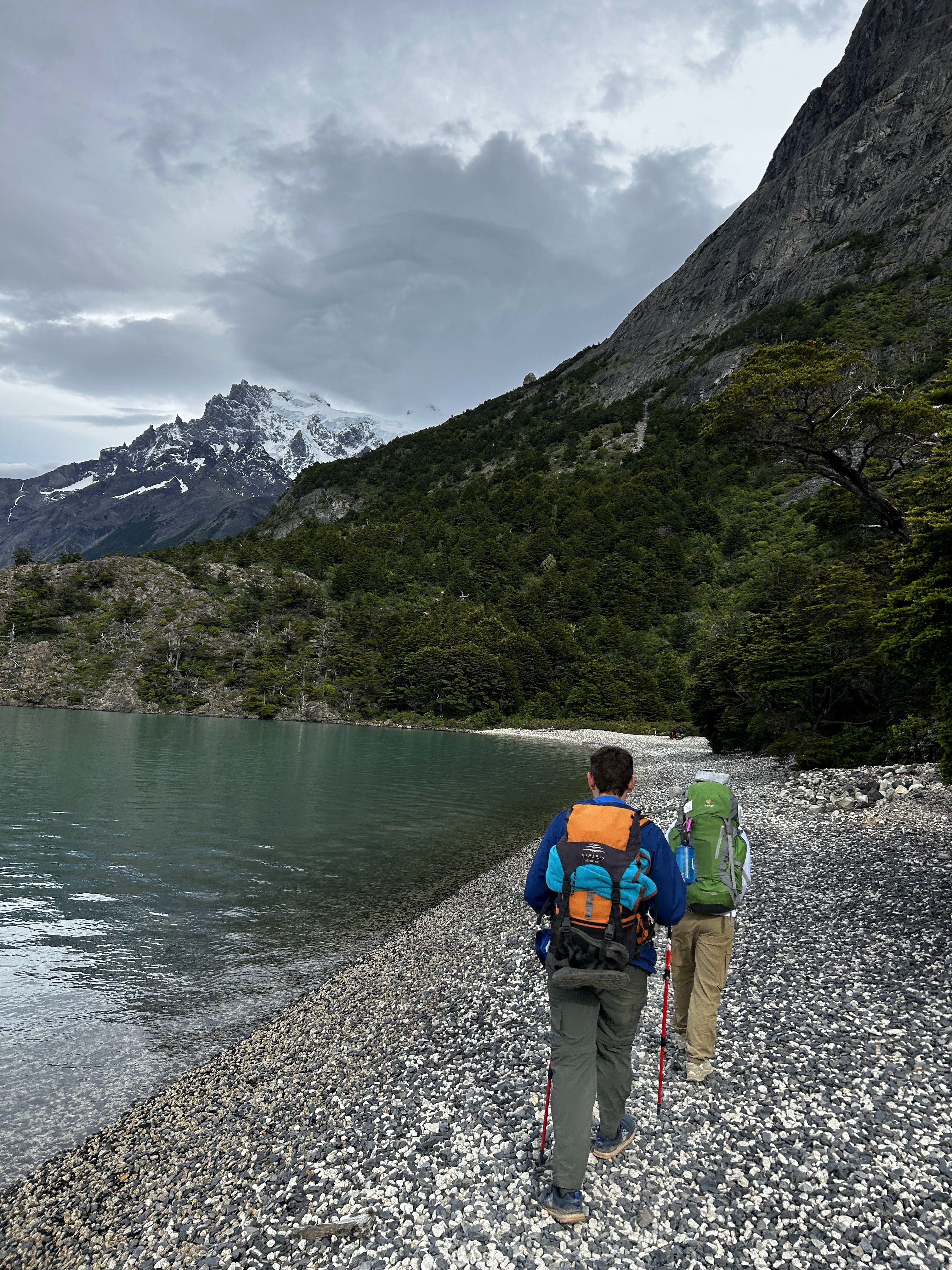 Hiking to the French and British viewpoints along the way was quite a surreal experience – whenever we had the chance to look away from our feet as we scrambled on top of loose granite blocks, we’d marvel at the massive snow-covered slopes seemingly a few hundred feet away. Every now and again, a massive boom would ring out and we’d see a small (relative to the entire snow-covered area) amount of snow falling off a small edge of Paine Grande Mountain. This hike, while exhausting, was a fantastic experience that has us end in a small forest at the base of a mountain range encompassing almost the entire panoramic view.