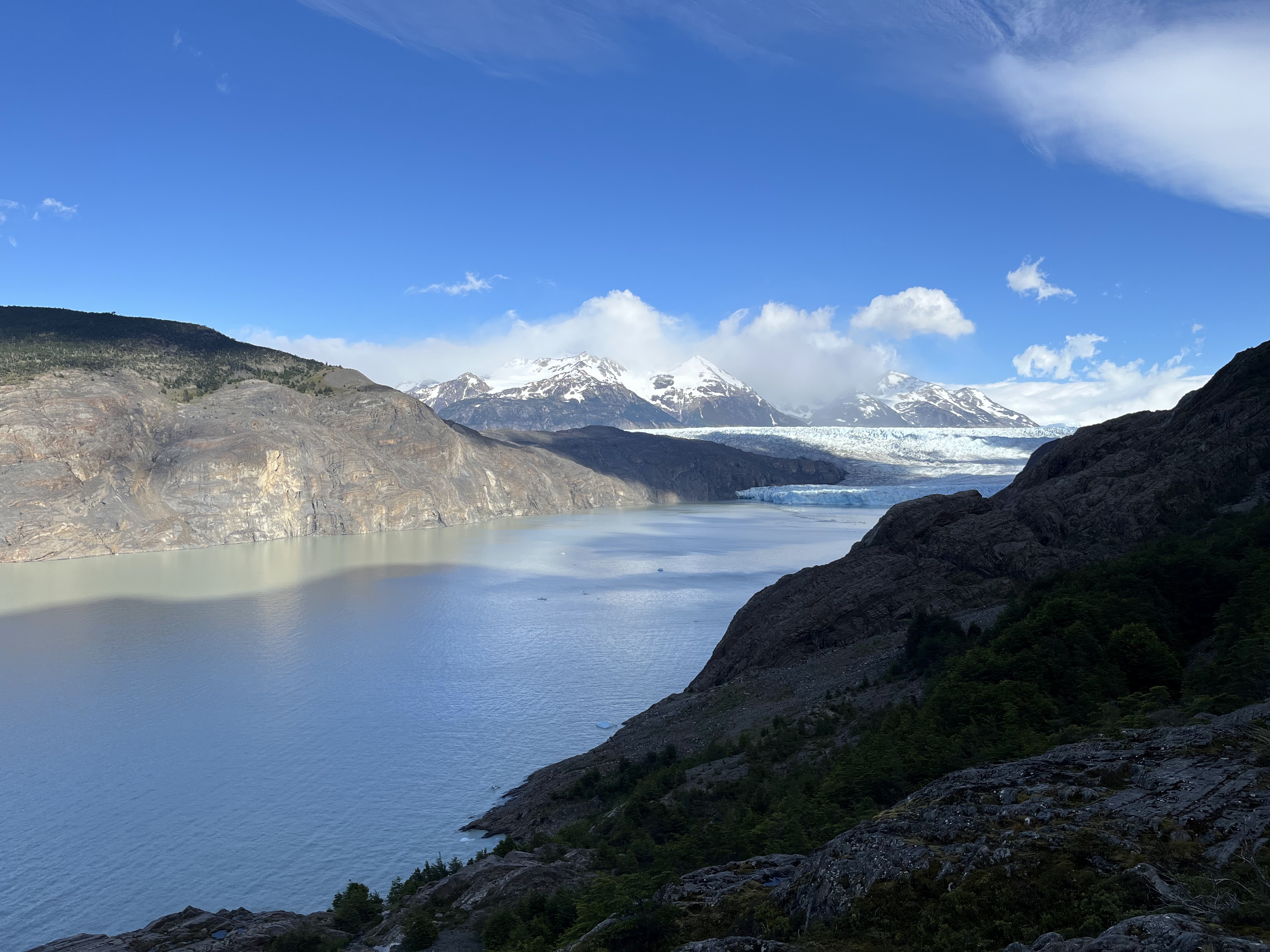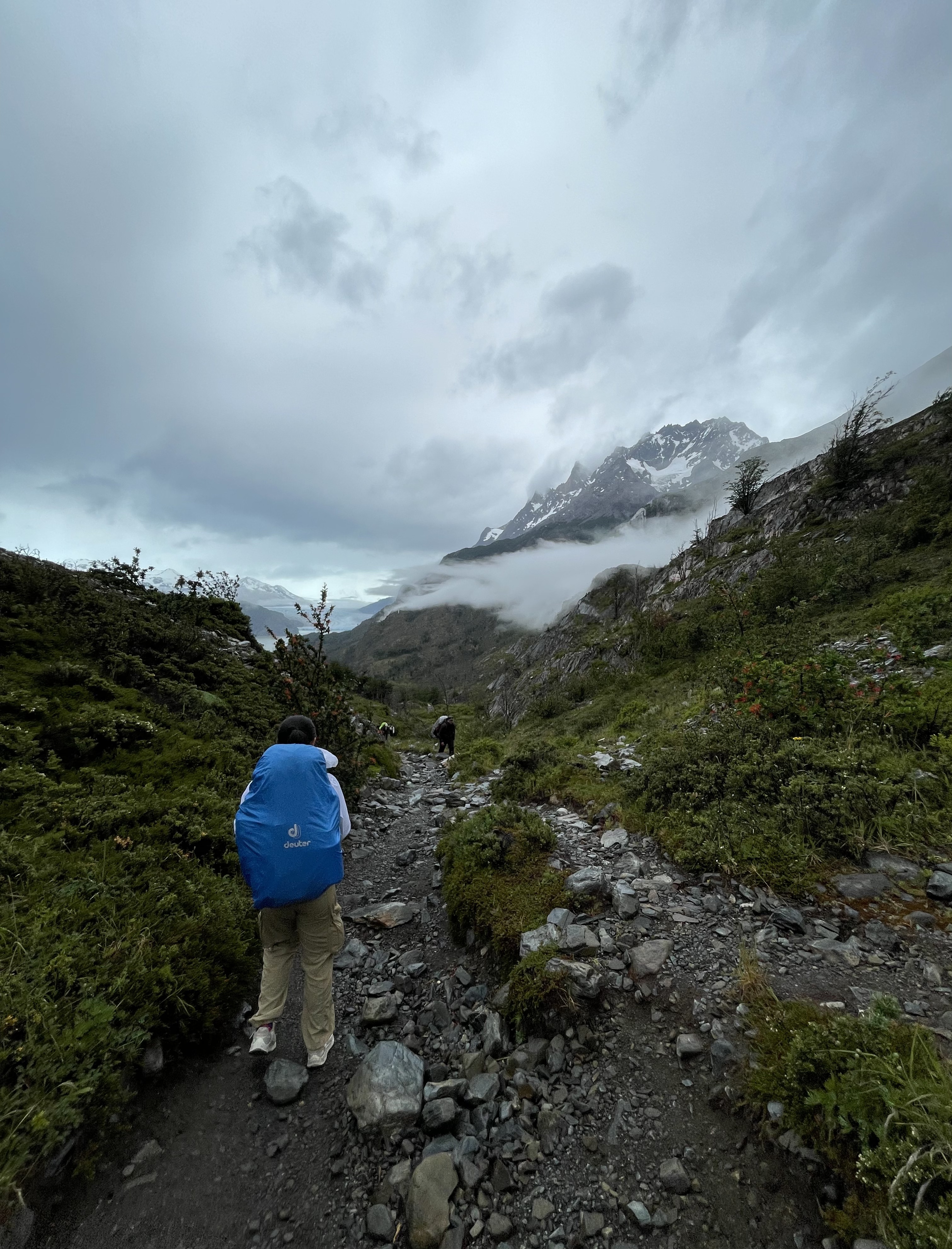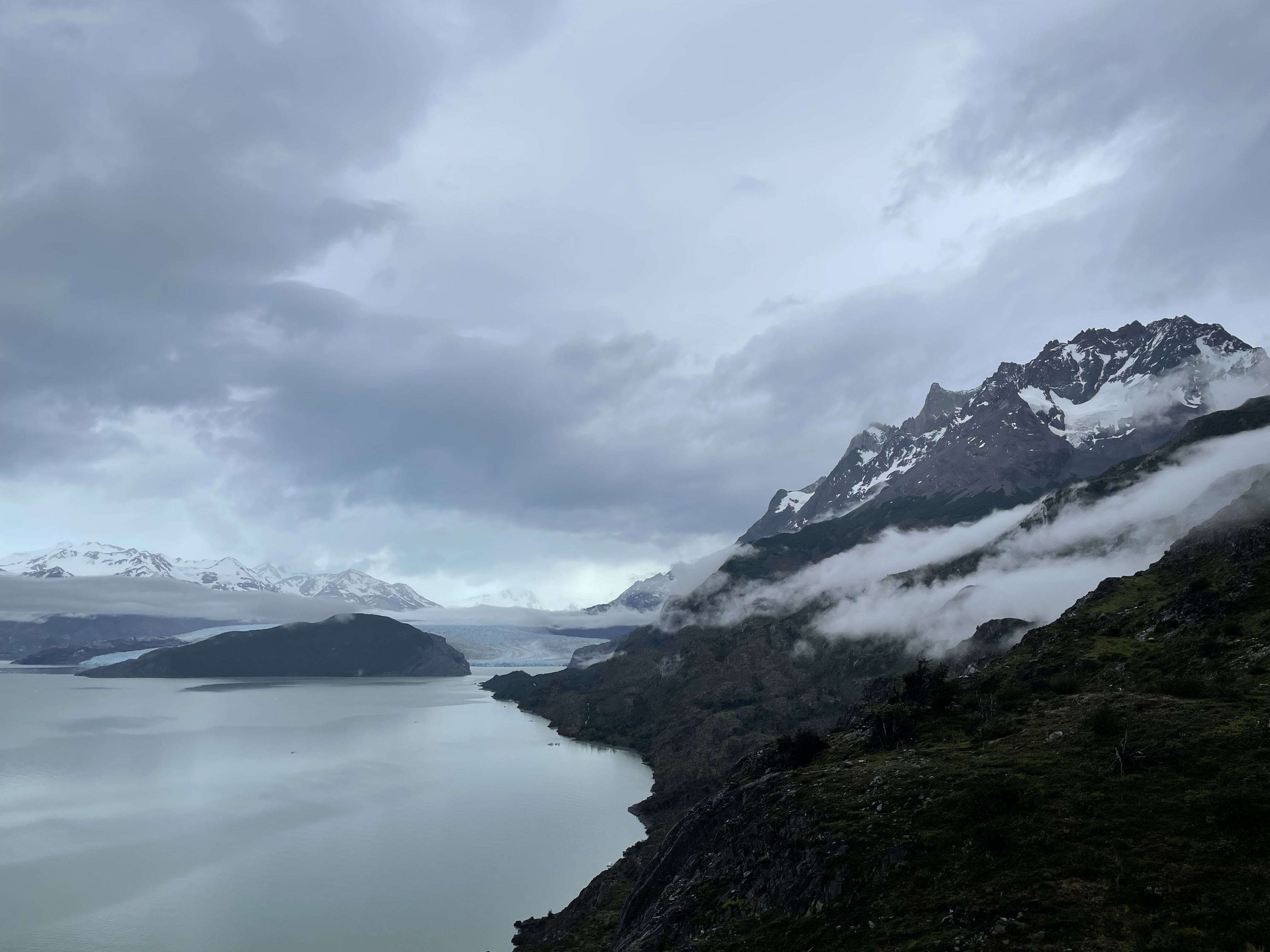 Our third day in the park came to a close almost instantly once we arrived at the refugio – we checked in to (significantly downgraded compared to nights prior) tents and quickly ate about a thousand calories, before passing out for the night. Day 4 was another ‘short’ day with only a ~6mi hike from Paine Grande to Refugio Grey – an outpost right outside of the famous Grey Glacier in the northwest of the park. Unfortunately the weather was not in our favor, and we had a significant amount of rain throughout the entire hike. Nevertheless, we still had some great views of the glacier as we made our way along Lago Grey on our west.