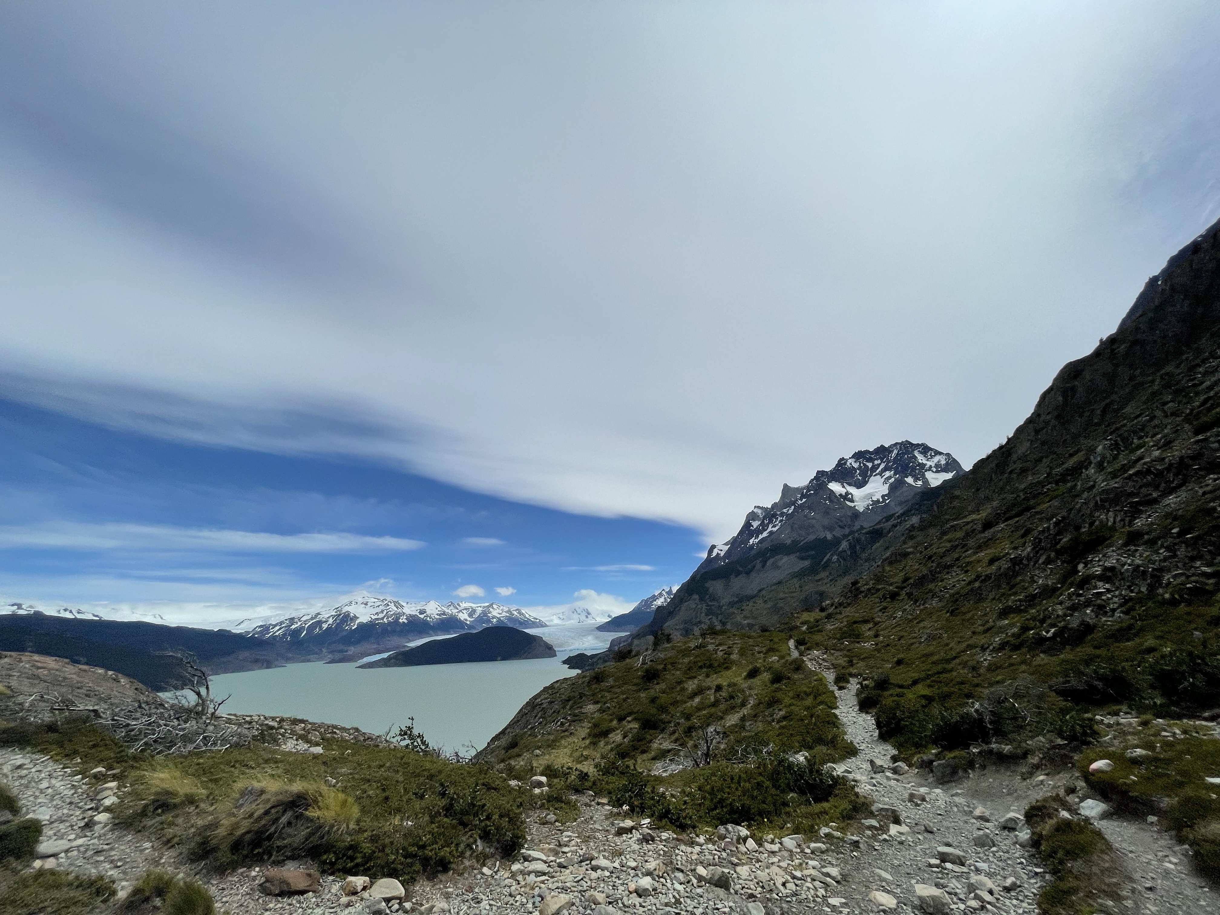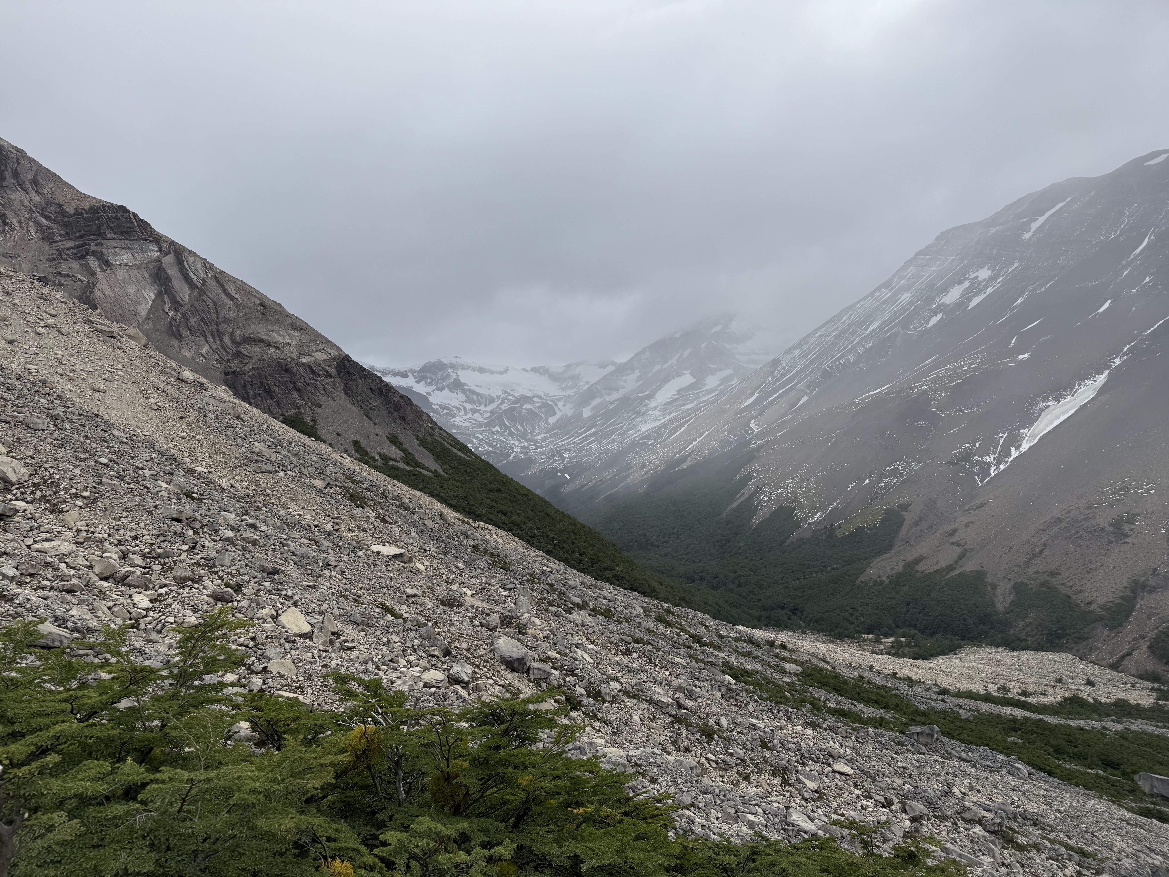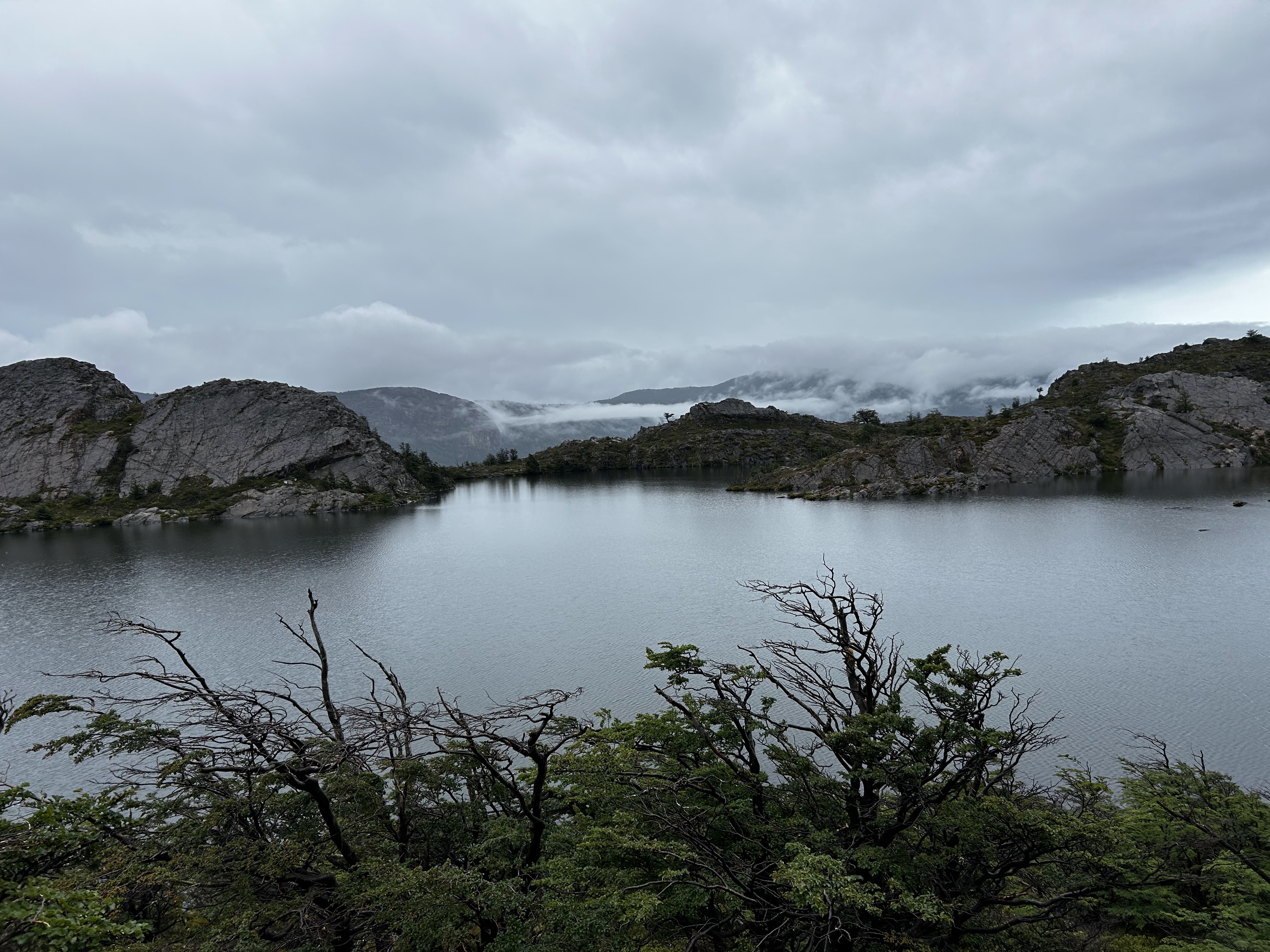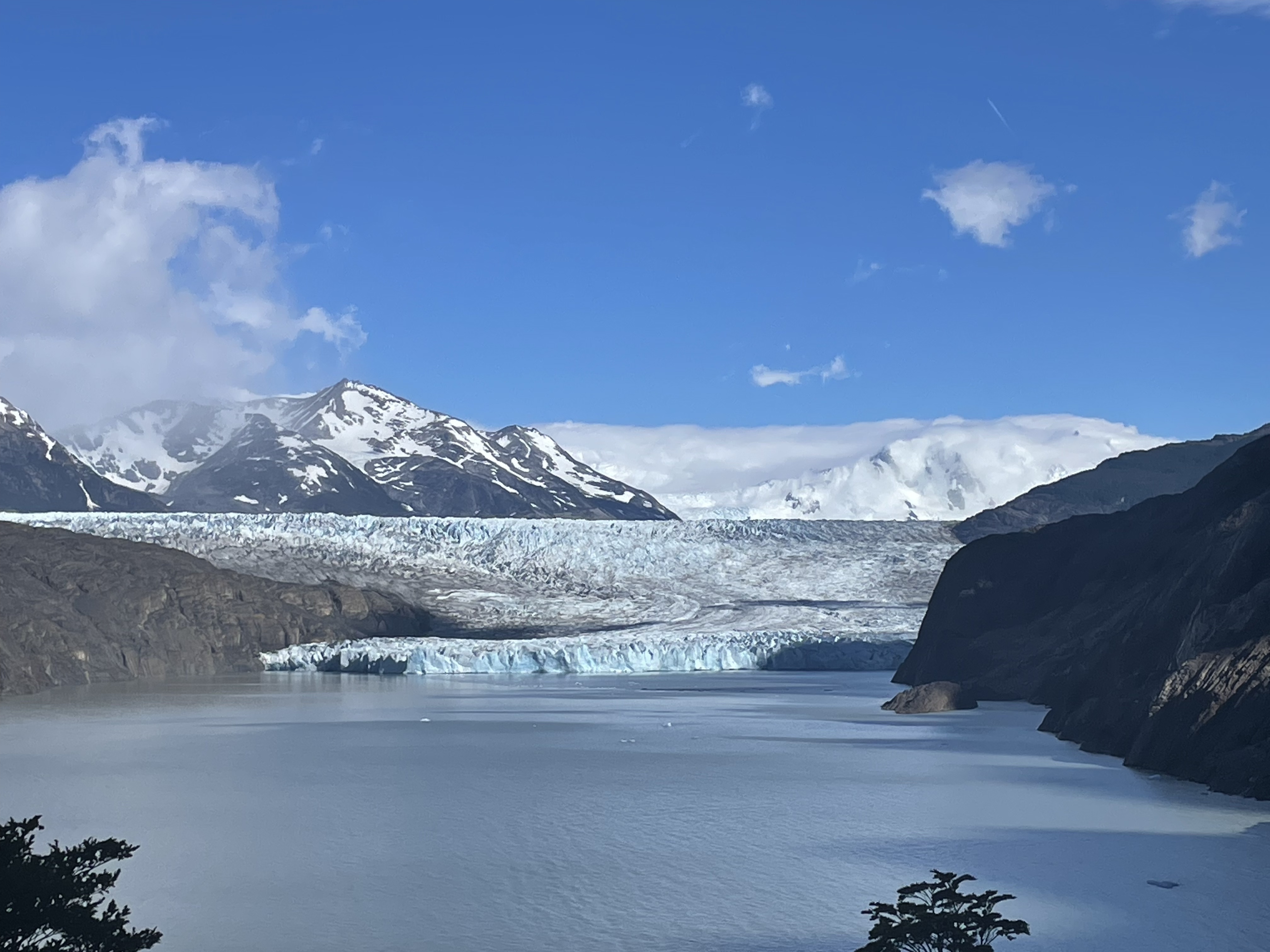 Our third day in the park came to a close almost instantly once we arrived at the refugio – we checked in to (significantly downgraded compared to nights prior) tents and quickly ate about a thousand calories, before passing out for the night. Day 4 was another ‘short’ day with only a ~6mi hike from Paine Grande to Refugio Grey – an outpost right outside of the famous Grey Glacier in the northwest of the park. Unfortunately the weather was not in our favor, and we had a significant amount of rain throughout the entire hike. Nevertheless, we still had some great views of the glacier as we made our way along Lago Grey on our west.