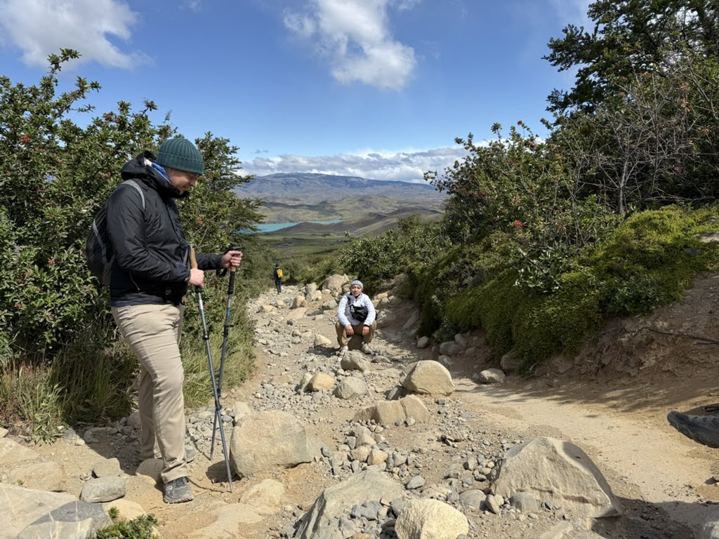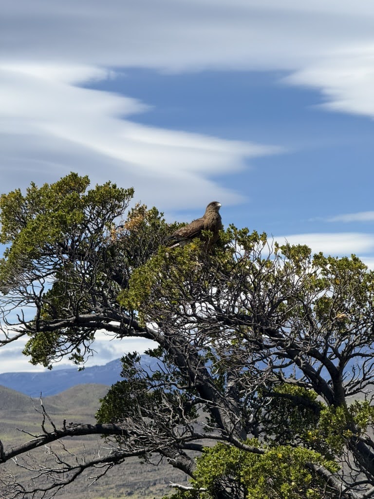 After crossing one of these bridges, we decided we were going to head back and not be rushed for time before our evening ferry – not because I was scared of crossing even longer hanging bridges or anything. Our hike back was a repeat of the previous day’s hike, but this time with a significantly enhanced view of the surrounding areas. We even saw a Caracara doing a little lunching on our way back to Paine Grande!