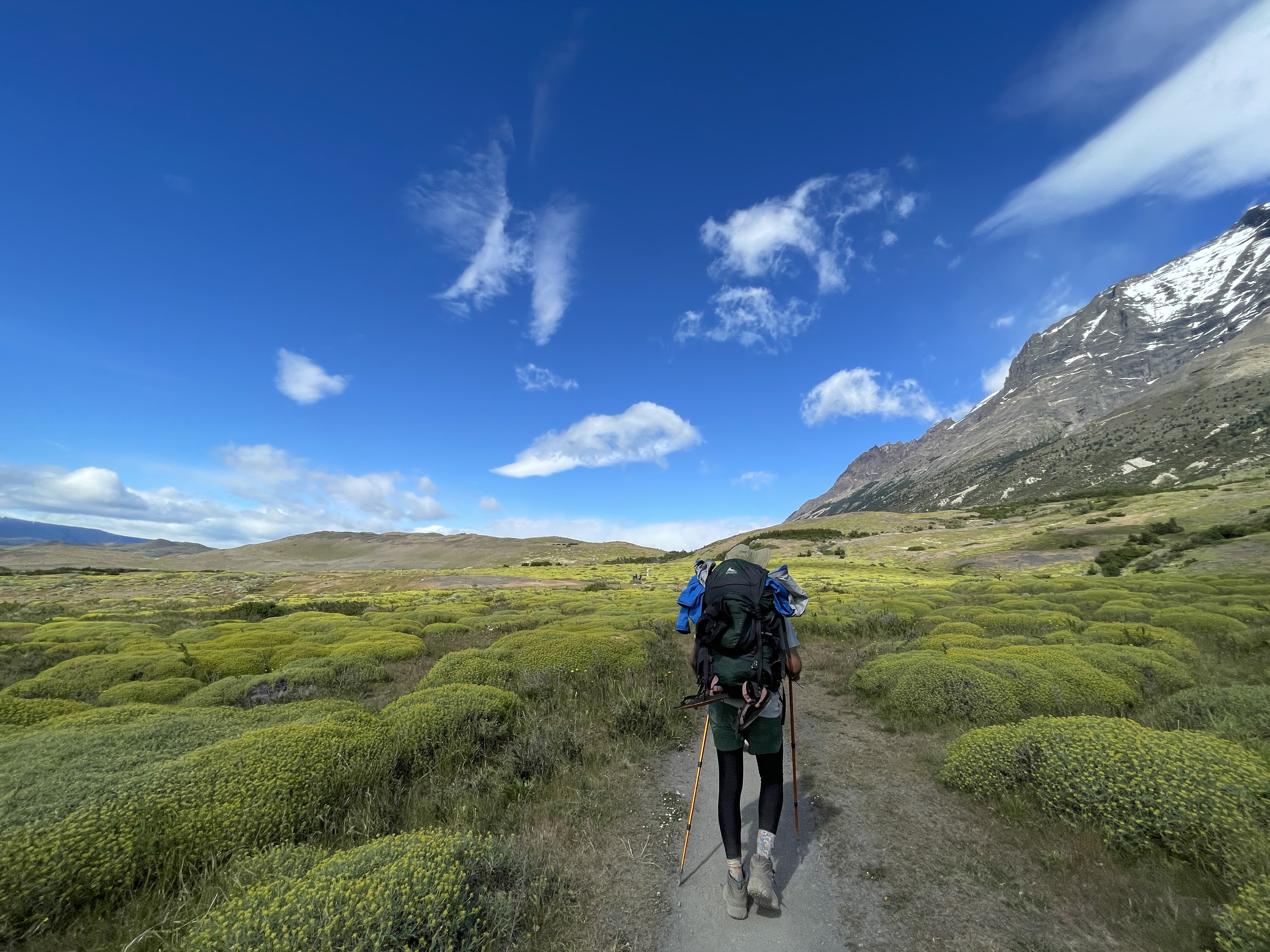 The next day was the longest we had on the trail – a ~8mi trip from Cuernos to Paine Grande, with a 7mi detour to the Frances Valley where we could observe the eastern face of the Paine Grande Mountain and the countless avalanches that trigger throughout the day. This detour not only adds a significant length to the hike, but also a huge elevation gain of ~3300ft over the course of the day. Thankfully the trekking poles make the load a lot lighter!
