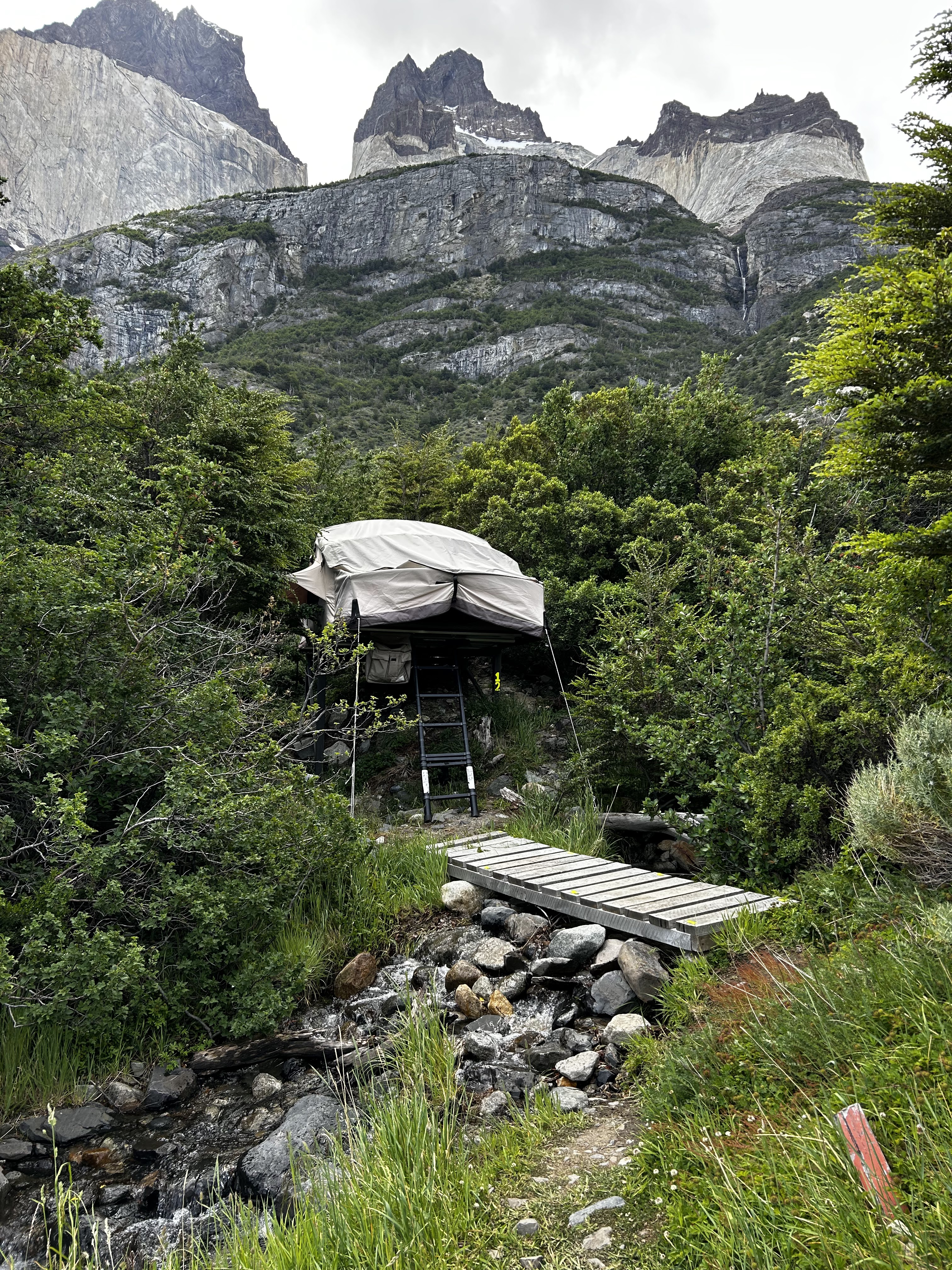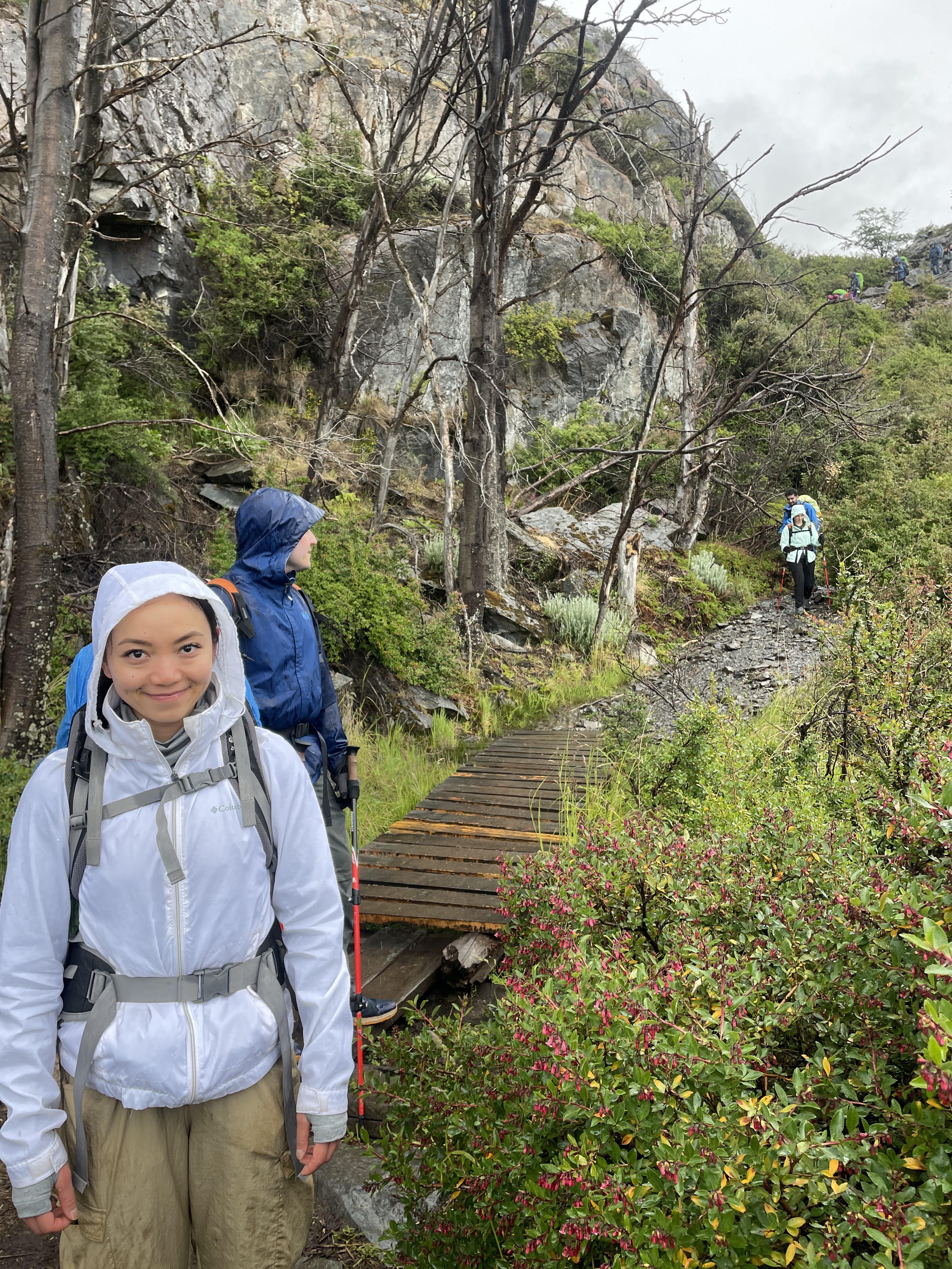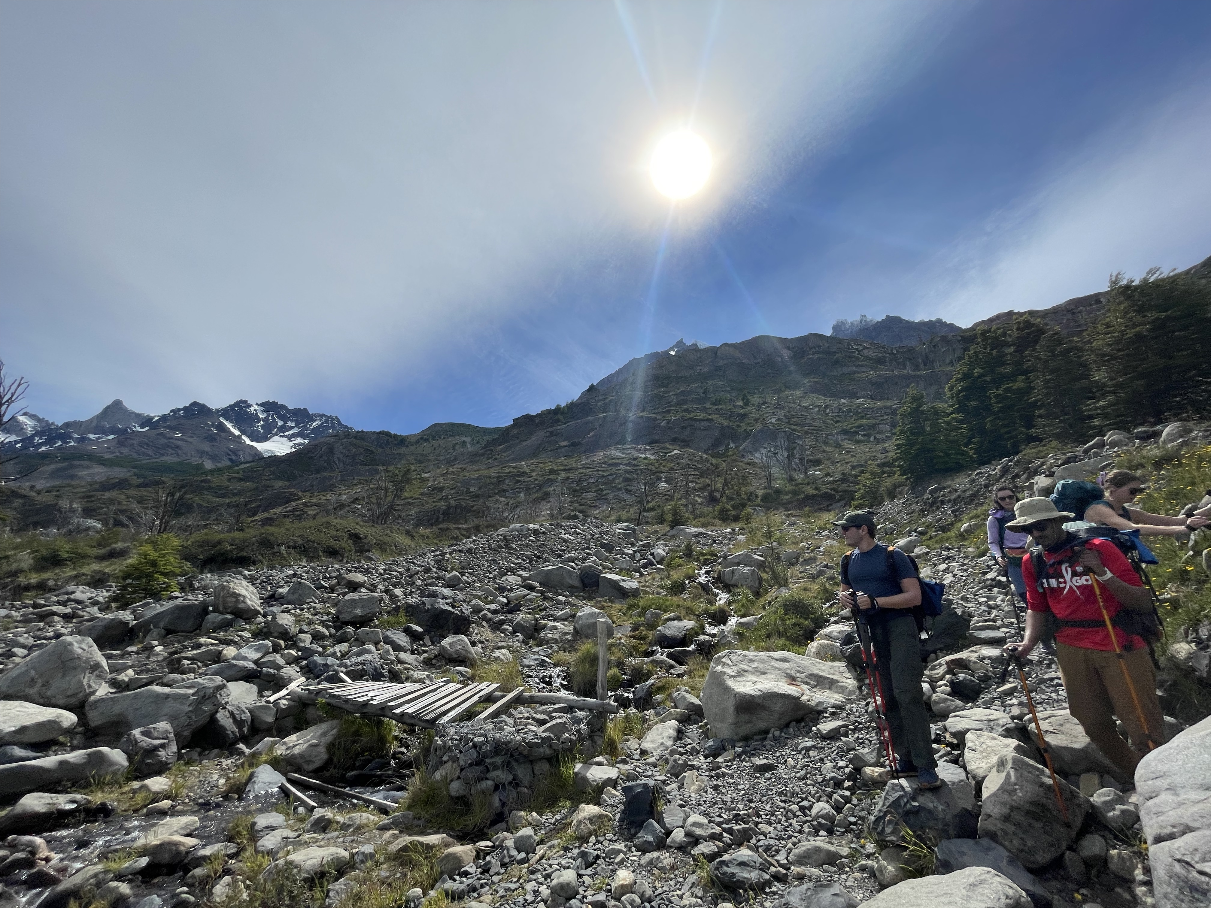 We woke up on day 5 a little less rested than the prior nights, but I’m sure the guy snoring loud enough to wake up all 40 tents got his good night’s sleep! Thankfully overnight the weather decided to improve a good bit and we were no longer going to be soaked the entire hike. Our first stop was the hanging bridges on the way to Grey Glacier – these are wooden bridges (with reinforced steel cables to be fair…) that span some of the rivers that drain into Lago Grey and to say that crossing them is a bit daunting is… quite an understatement. But maybe that’s just my fear of heights kicking in…