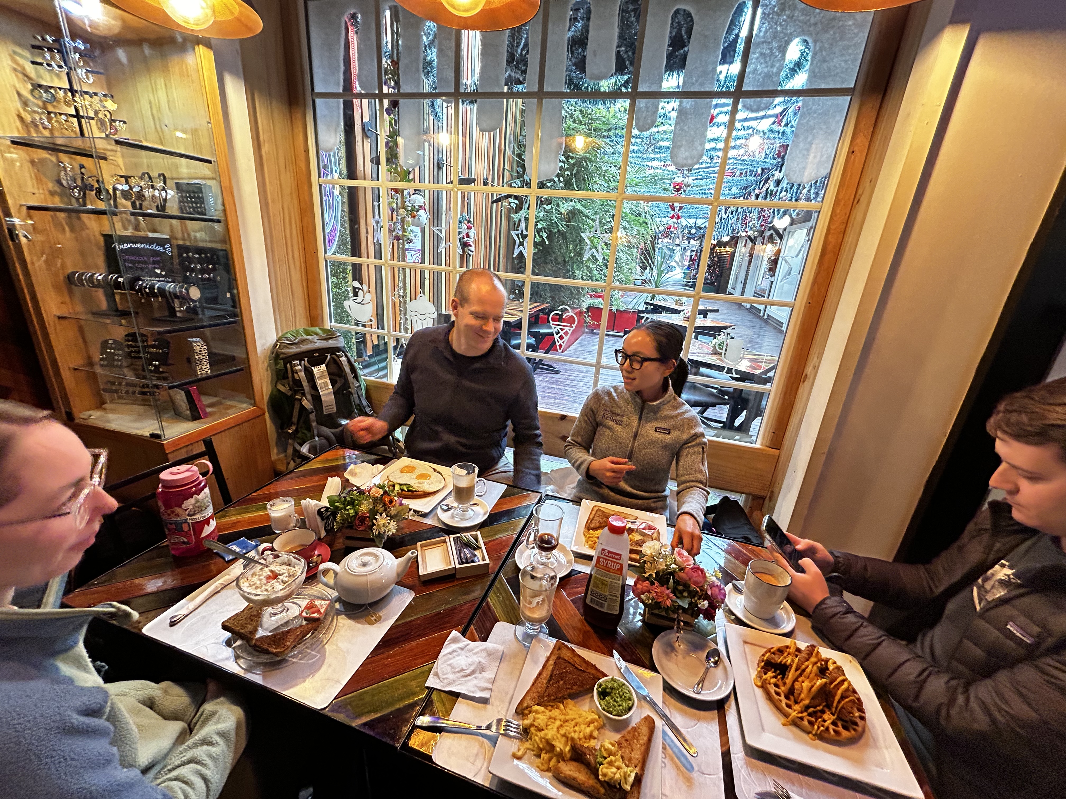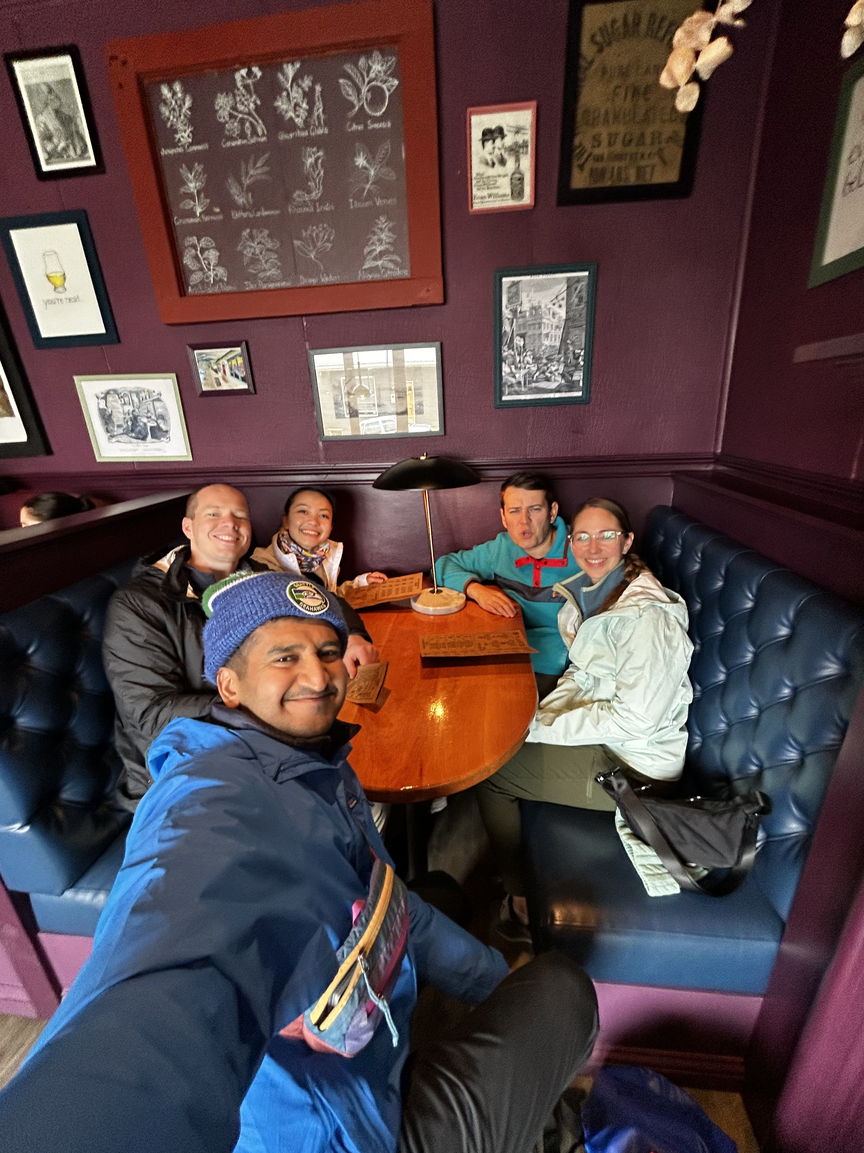 The biggest pre-planned activity in Chile was the Patagonia W Trek – a 50+ mile multiday hike through the famous Torres del Paine Chilean national park. We started the trip from Santiago where we met up with Rahul, Jonathan and Ferrona – friends who flew in from Boston and San Francisco respectively to hike the W with us as well! A few hours after our 4am departure from Santiago, we arrived in the small town of Puerto Natales which is itself another few hours away from the actual park. Since our itinerary required us to stay in Puerto Natales overnight, we took this opportunity to carbo-load and check out various restaurants in the town. Including the post-hike dinner, here are the places we visited that we would definitely recommend to anyone on a similar itinerary: