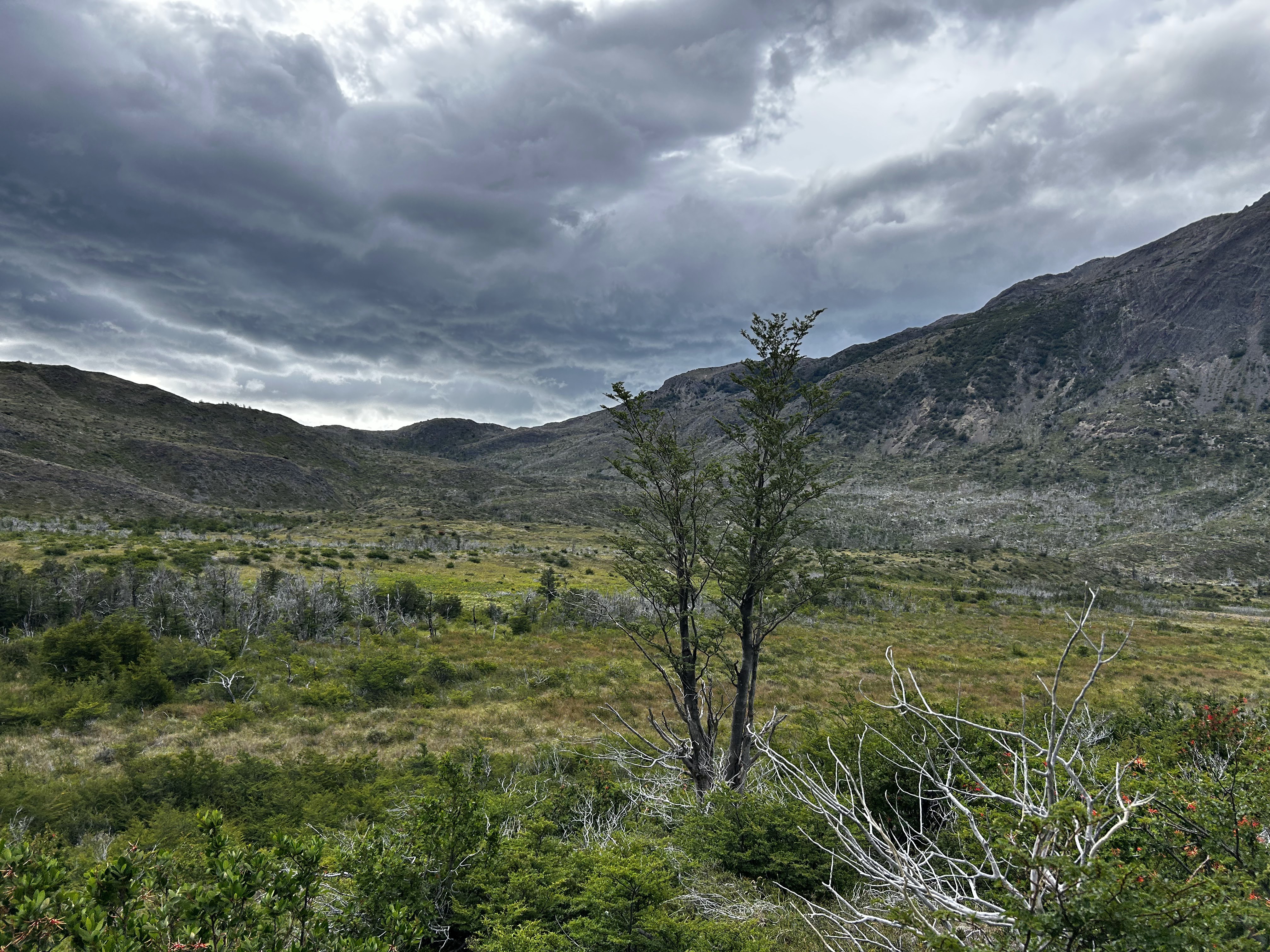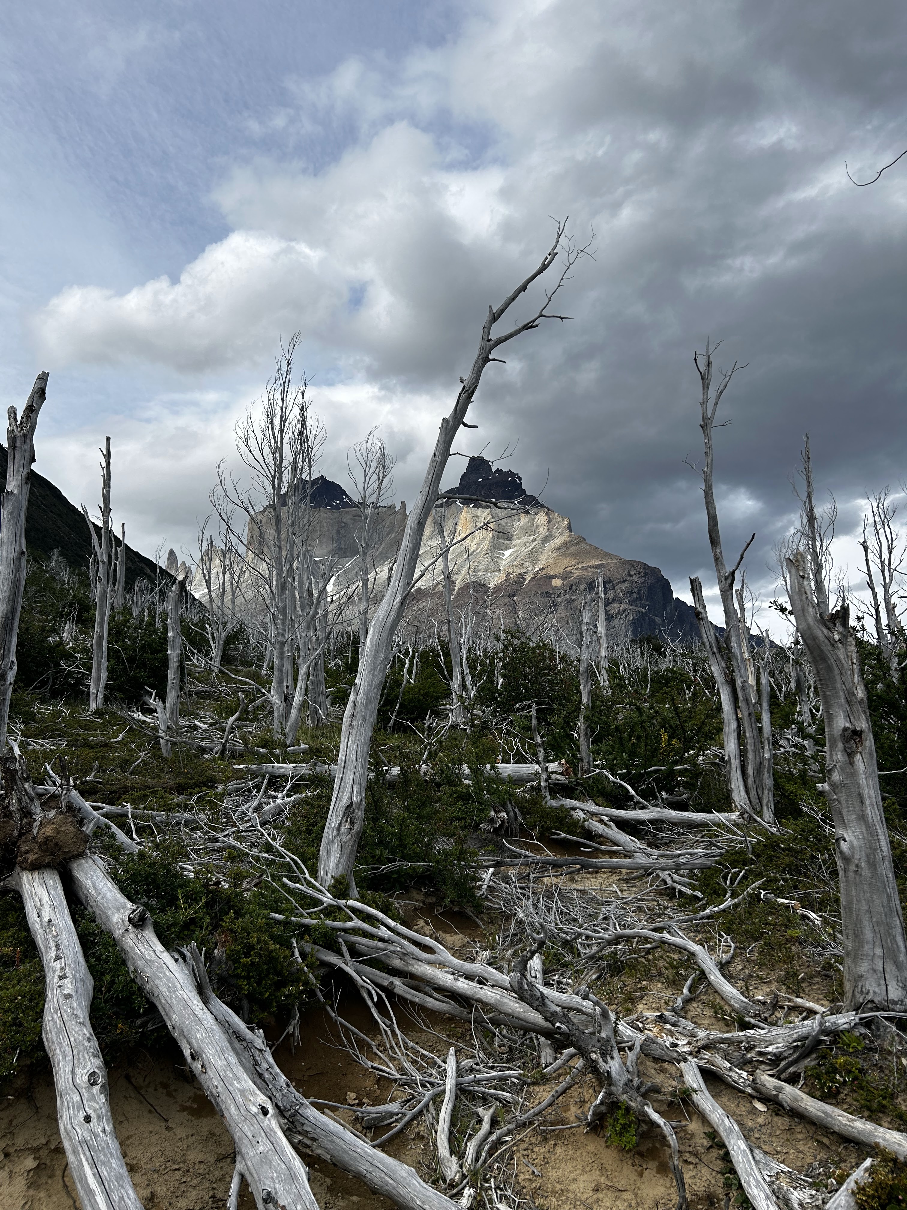 Going back down was an adventure in and of itself, with yet more daredevils speeding past us on yet steeper slopes than ones we climbed on our first day… good luck! The rest of the day had us walk to Refugio Paine Grande through the site of a portion of burned forest from the 2011 Torres del Paine Fire. It’s tragic to see the devastation caused by an inattentive tourist from more than a decade ago, and serves as quite the stark reminder that we need to be extremely careful with the beauty that we have left lest future visitors have a completely devastated experience…