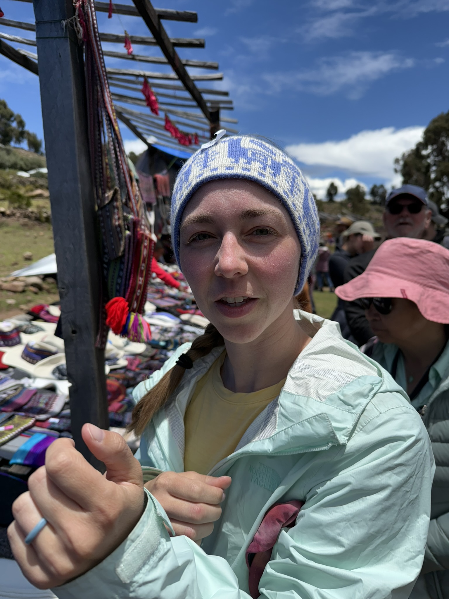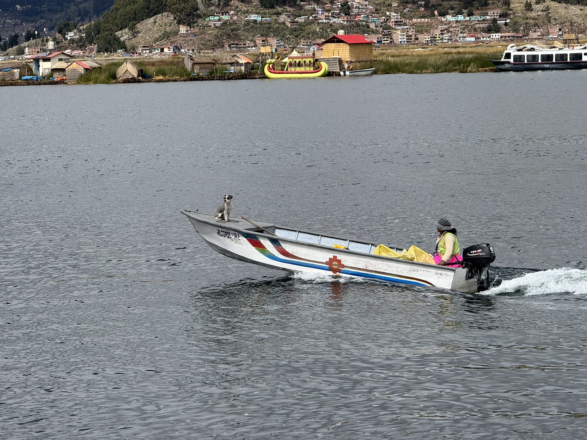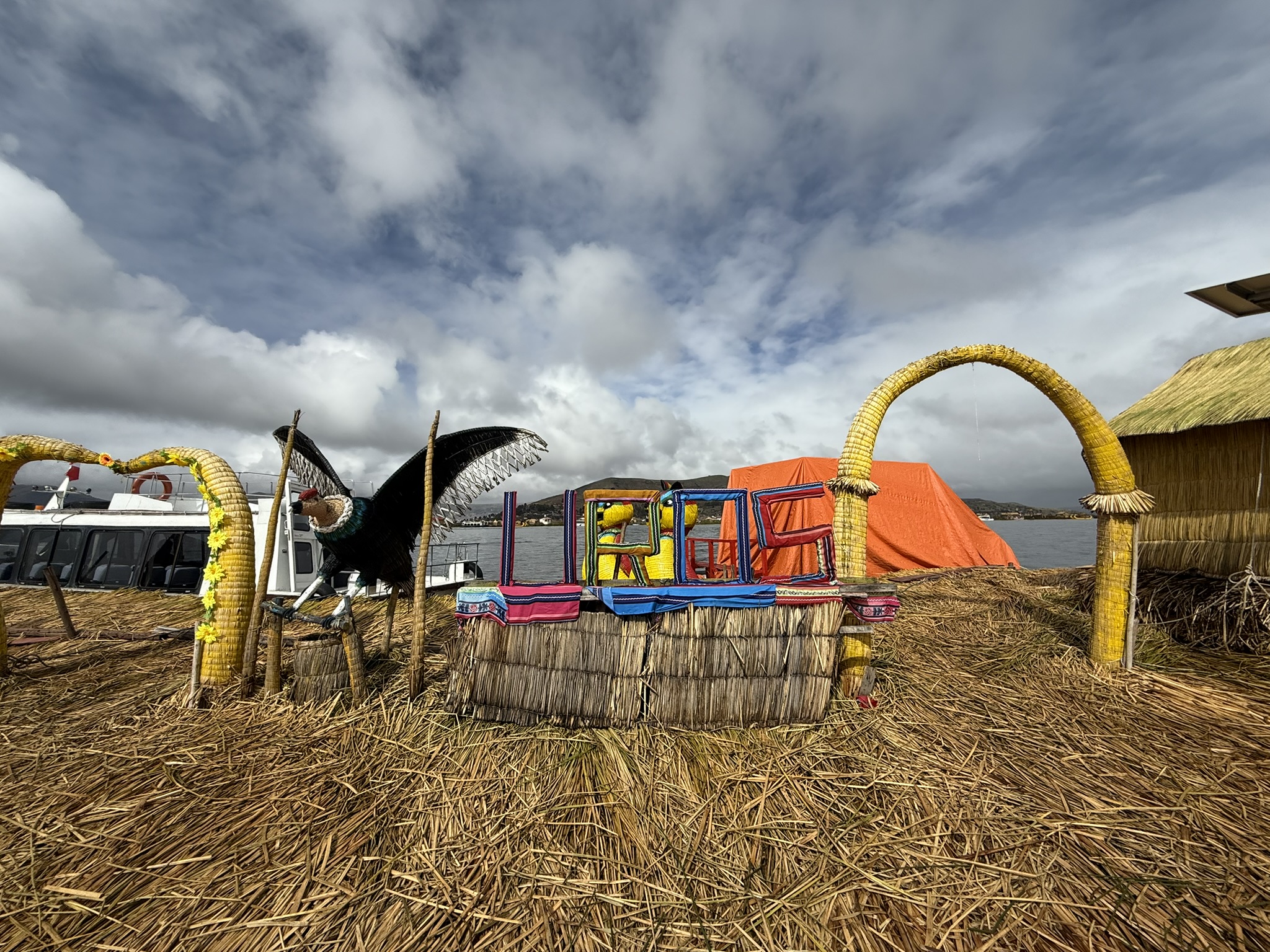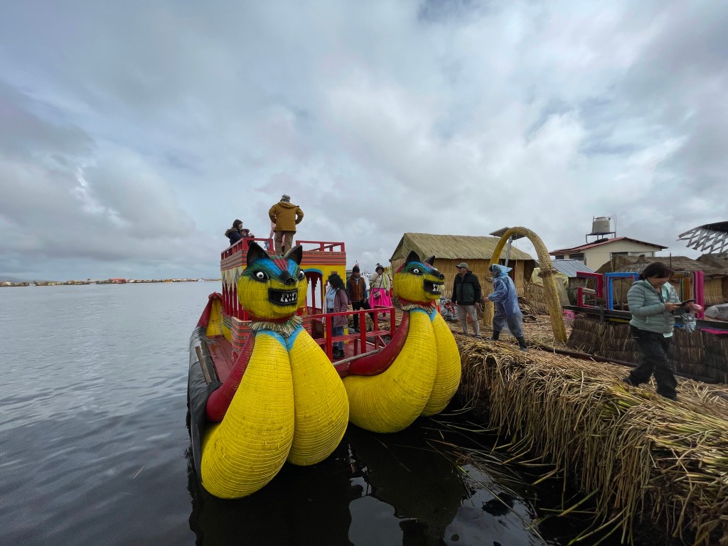 The next full day on the lake we decided to do a boat tour, where we would visit the indigenous Uros people who live on floating reed islands in the middle of the lake. It was a really fascinating experience having our boat essentially dock in someone’s front yard and then hopping out to get introduced to the lovely family (only women and children, as the men are out fishing all day). We got to walk around the island home and had some of the typical tourist interactions (try my food, also buy this mass-manufactured item that I totally made by hand), but overall it was interesting seeing what is essentially a snapshot of the pre-Inka culture in the area – the floating islands were a final refuge for the people who resisted Inka conquest in the region and I can definitely appreciate why even the Inka warriors wouldn’t want to get in fights on crowded reeded islands…