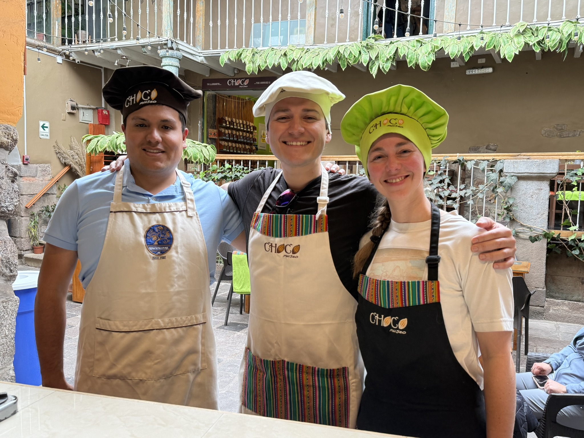 Machu Picchu commercialization aside, the rest of our time in Cusco was a blast – the food scene is again fantastic, so we had a chance to sample a few traditional Cusquean dishes, including what was essentially a barbeque restaurant – this lunch also had a great show with traditional Peruvian dances in between bites of food! One unique thing we were also able to do here was chocolate making – not necessarily the full bean to bar process, but enough of it that we came away with some dorky pics and a higher level of appreciation for the subtleties of chocolate that isn’t doused in sugar. We also sampled some tea made from the cacao bean shell immediately post-roasting, and made some very fresh hot chocolate with beans we roasted and mashed ourselves. Overall the chocolate making class at the ChocoMuseo was a blast and I would highly recommend this to anyone in Cusco!