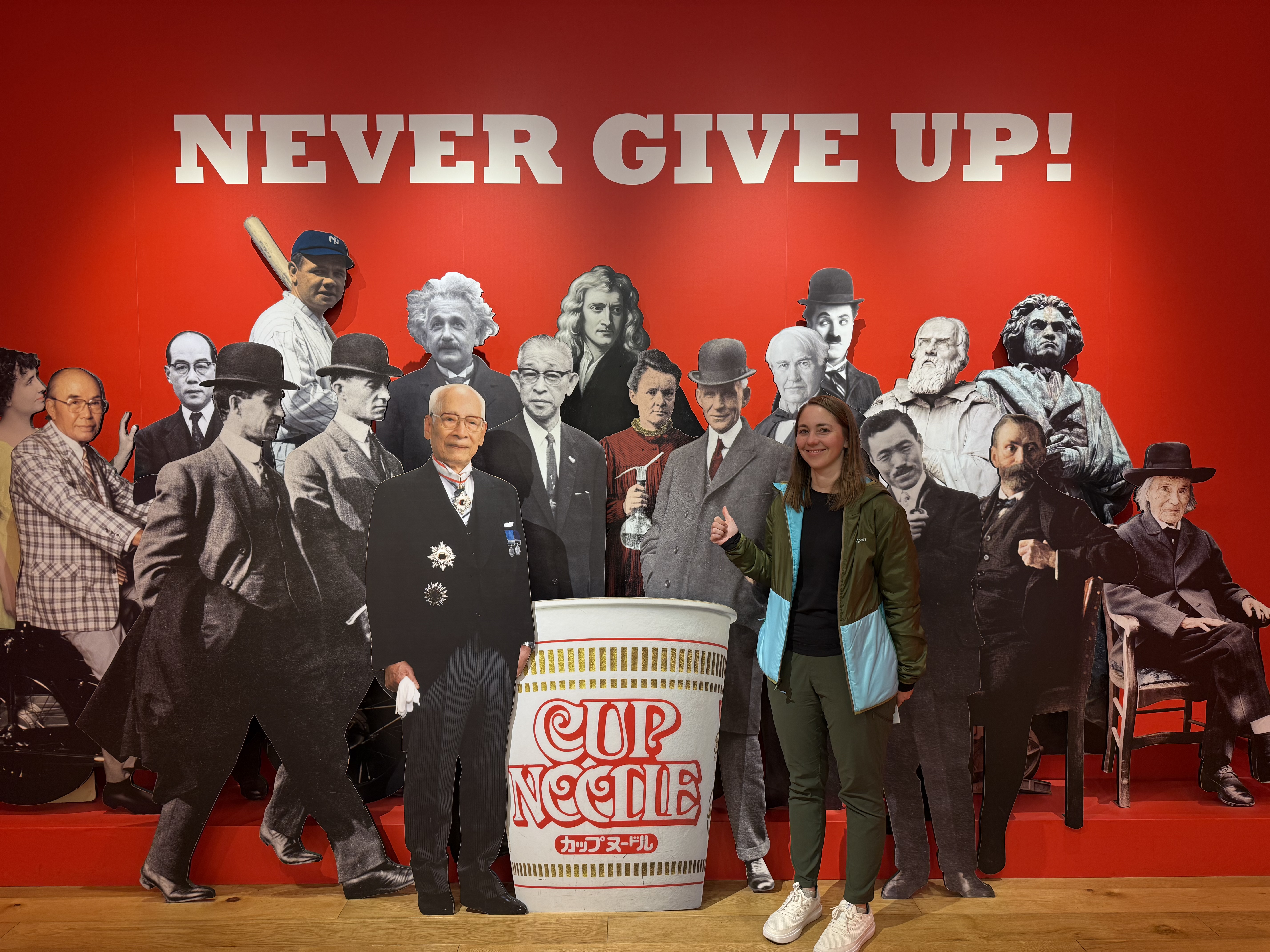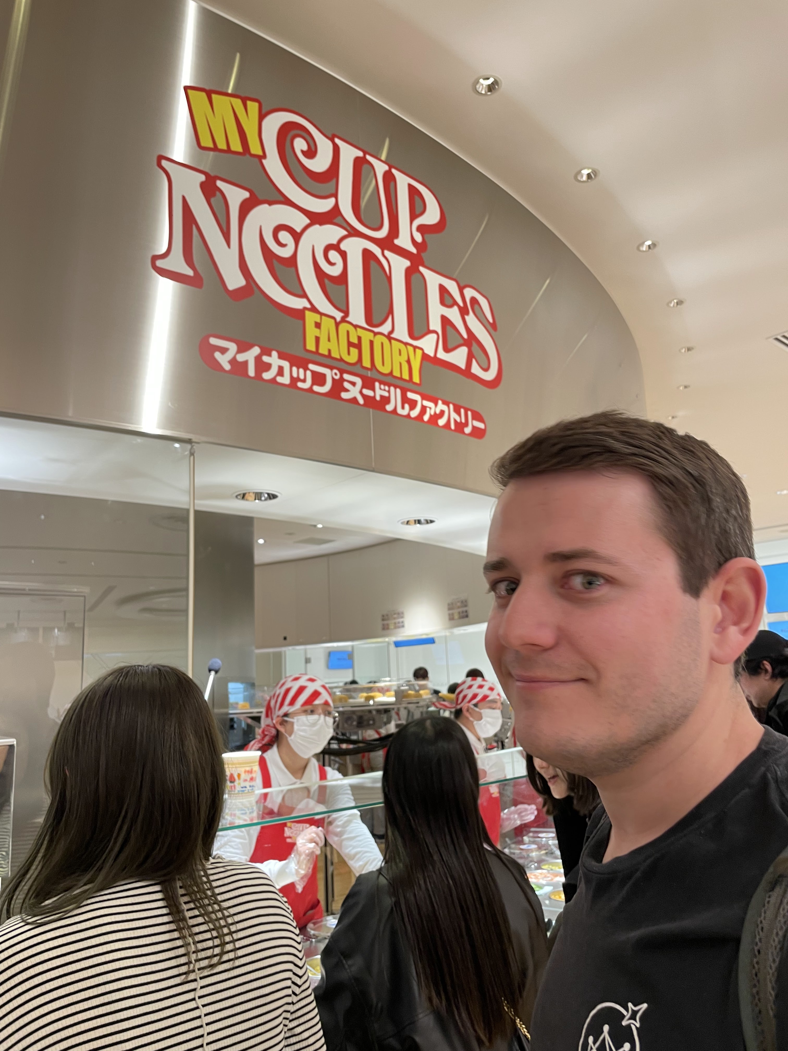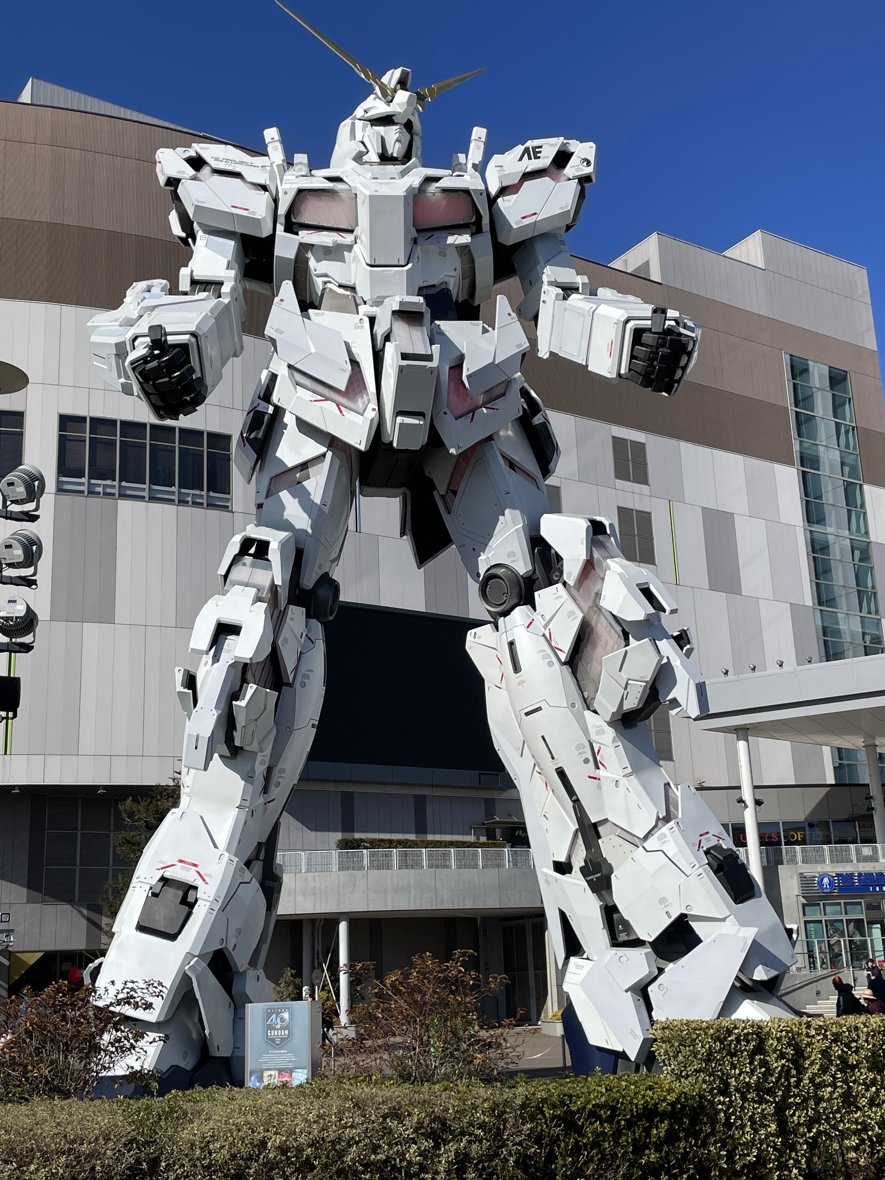 Later in the week we went for an even more touristy tour of Tokyo and hit up two main attractions – the Cup Noodle Museum and the Unicorn Gundam. The first of the two stops is pretty awesome… I’ve been here before, but it was Rachel’s first time and the pictures show the pure joy of seeing the history of cup ramen in person. We started the tour with a very high production value movie about the history of how Momofuku Ando started the mass-produced instant food craze that ultimately resulted in what we now know as cup ramen. Next up was cup ramen ice-cream, which I thought was going to be an interesting culinary design challenge that makes ice cream ingredients just look like cup ramen… nope, it was just soft serve with carrots, ginger, and other actual cup ramen ingredients. Weird. Anyway, we wrapped up the tour by making our own cup ramen which is the best part of the experience in my opinion – I made a great curry cheese ramen, and Rachel designed a great blog-inspired tomato-based serving!