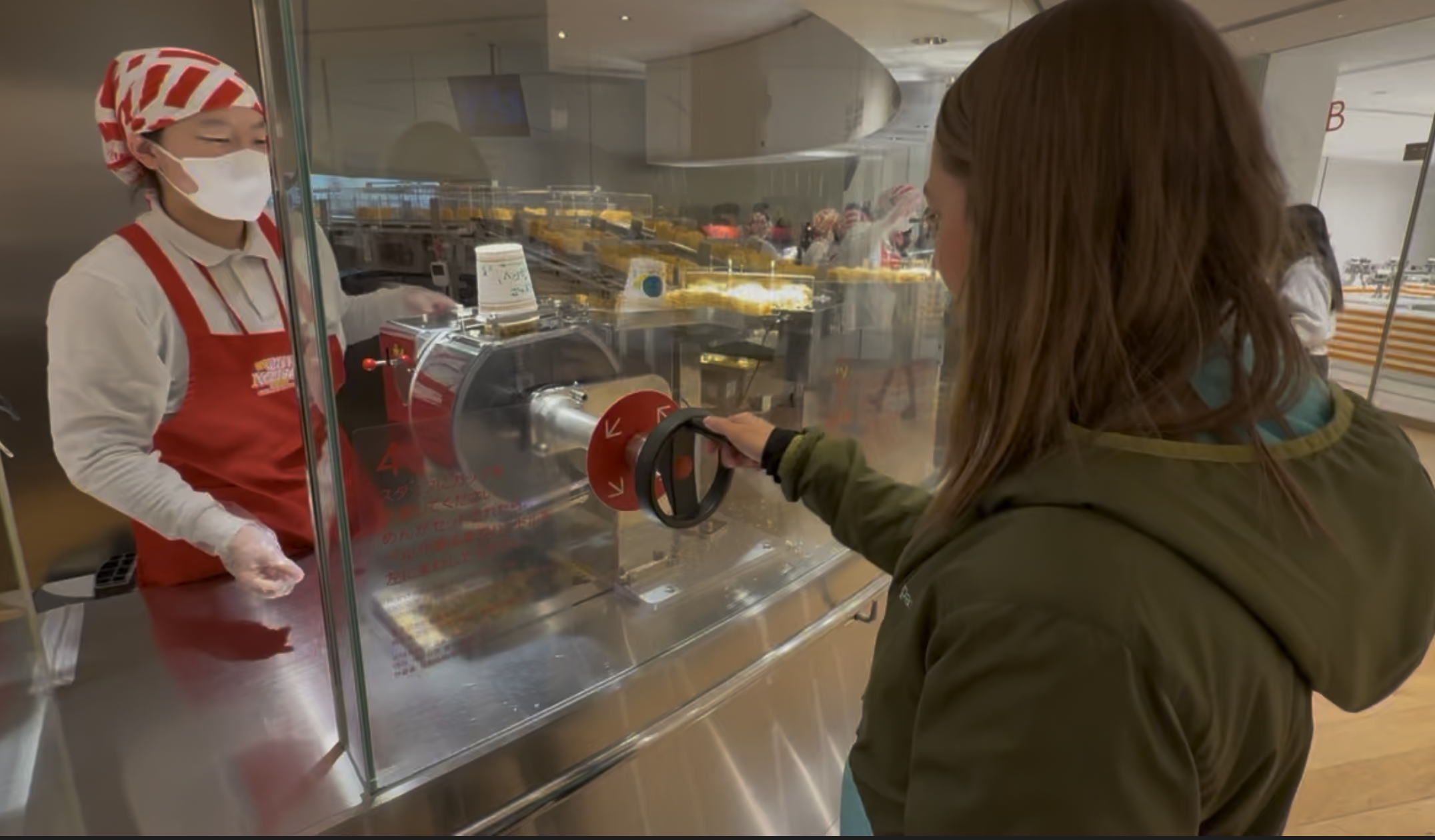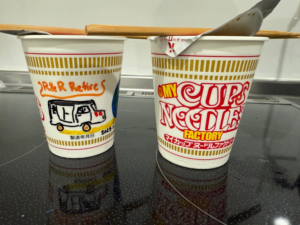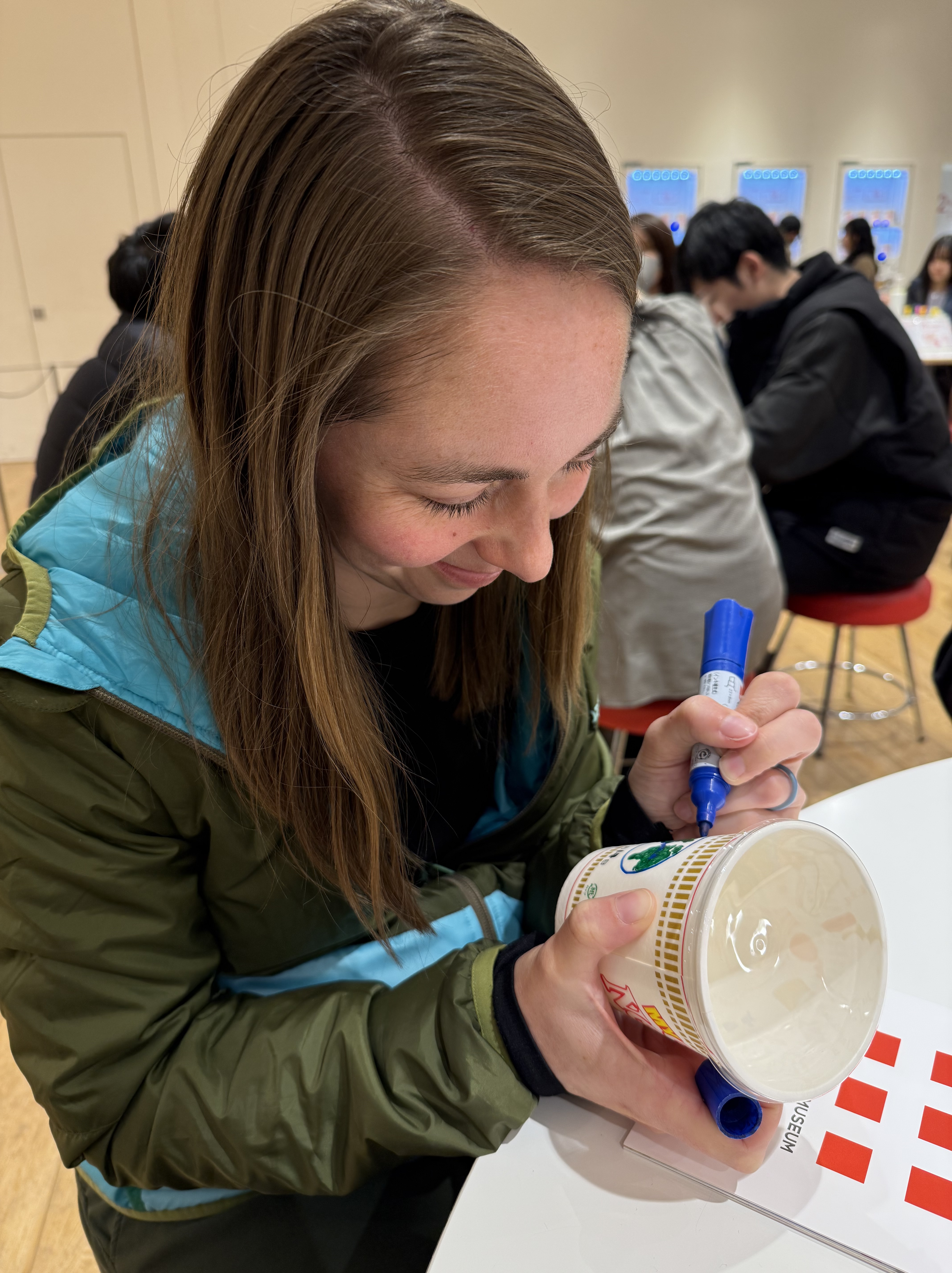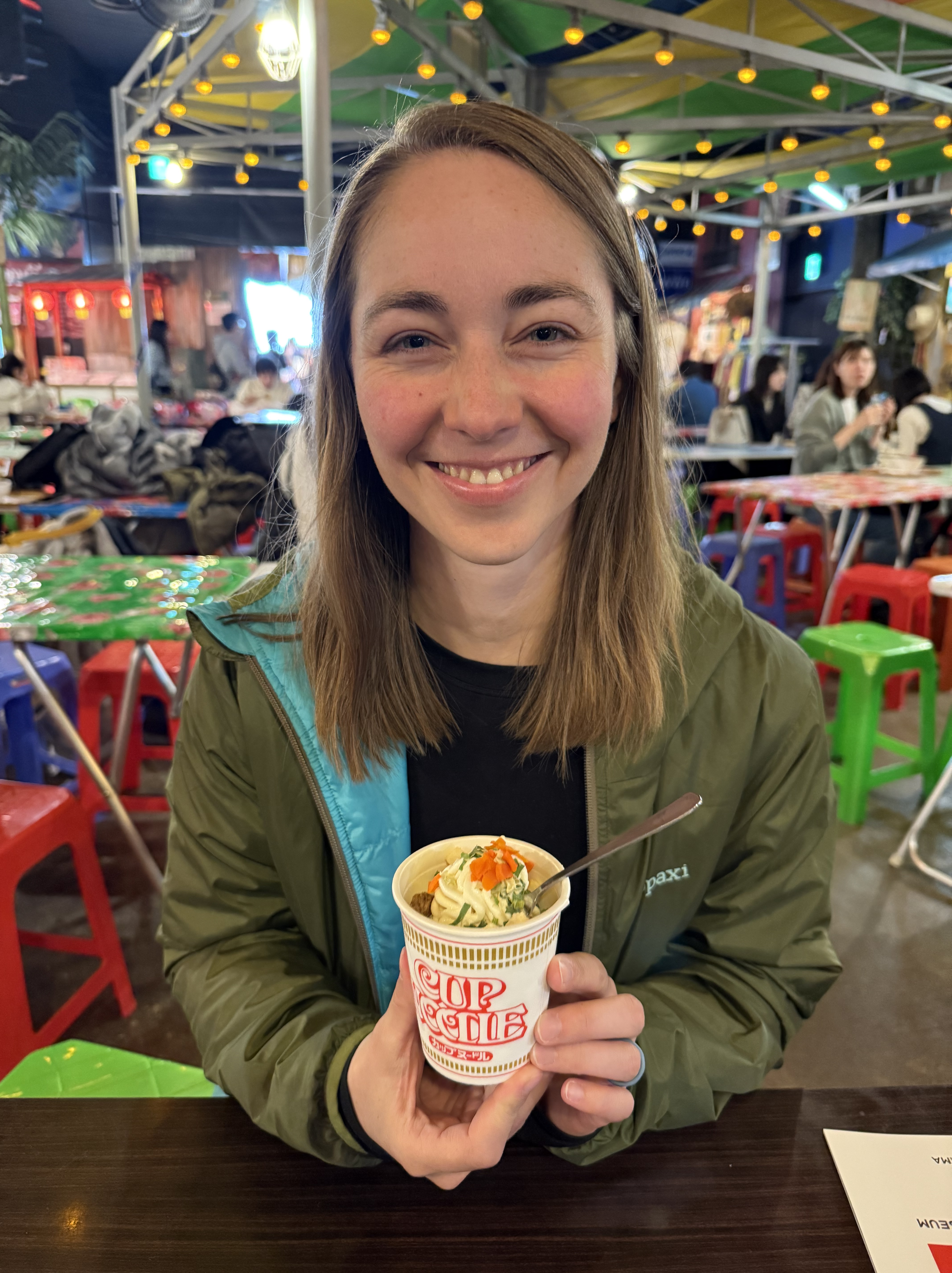 Later in the week we went for an even more touristy tour of Tokyo and hit up two main attractions – the Cup Noodle Museum and the Unicorn Gundam. The first of the two stops is pretty awesome… I’ve been here before, but it was Rachel’s first time and the pictures show the pure joy of seeing the history of cup ramen in person. We started the tour with a very high production value movie about the history of how Momofuku Ando started the mass-produced instant food craze that ultimately resulted in what we now know as cup ramen. Next up was cup ramen ice-cream, which I thought was going to be an interesting culinary design challenge that makes ice cream ingredients just look like cup ramen… nope, it was just soft serve with carrots, ginger, and other actual cup ramen ingredients. Weird. Anyway, we wrapped up the tour by making our own cup ramen which is the best part of the experience in my opinion – I made a great curry cheese ramen, and Rachel designed a great blog-inspired tomato-based serving!