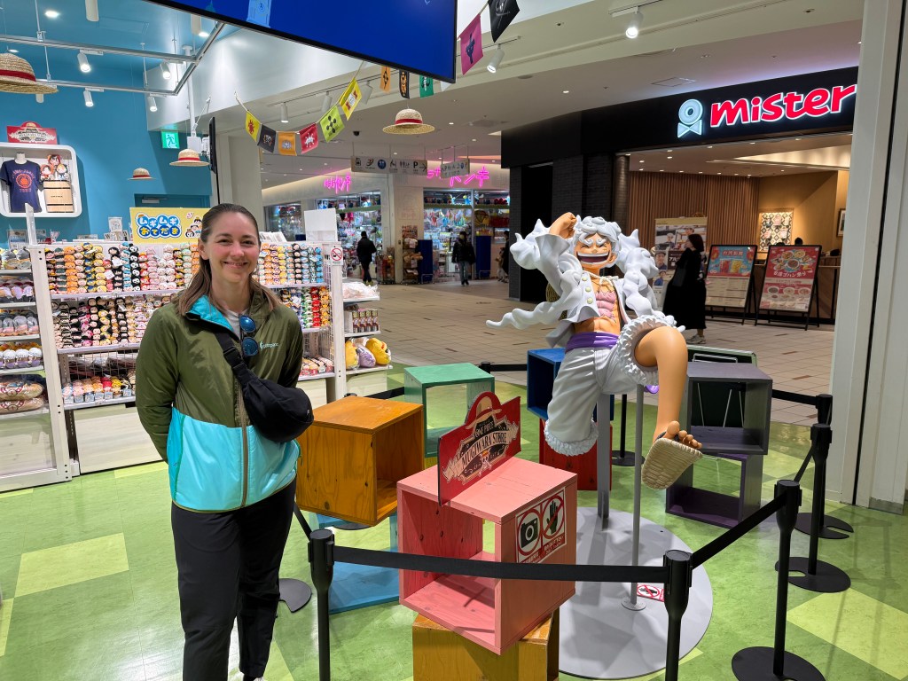 P.S. – We can’t come to Japan without indulging in some of the otaku highlights… here’s Rachel enjoying Gear 5 Luffy in a One Piece store. We’re home 🙂