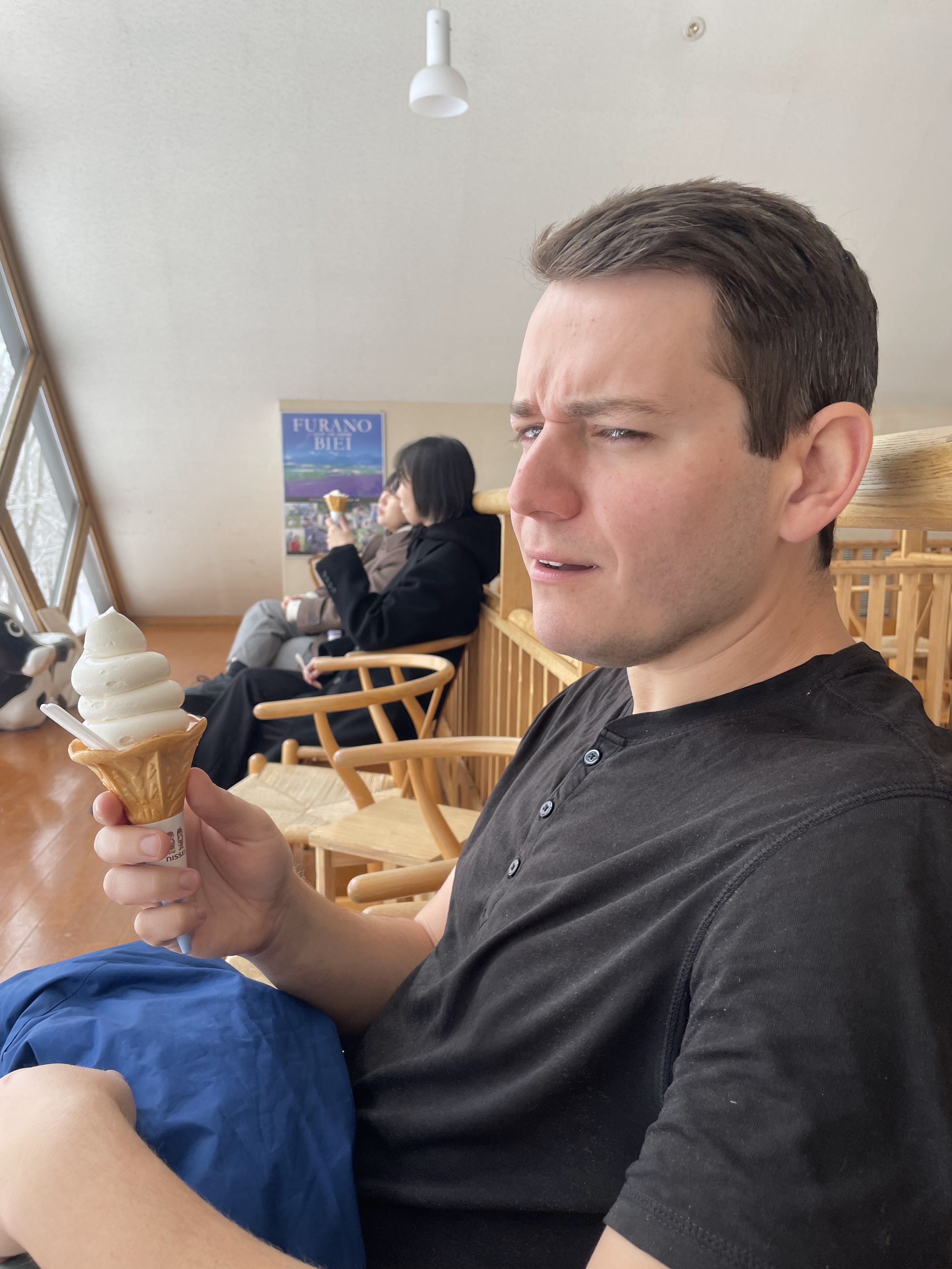 Outside of skiing and checking out the various coffee shops and restaurants in the downtown area, Furano isn’t really too bustling in the winter. Spring and summer apparently brings some other options like the Lavender Festival where the blooming lavender field are so expansive, you can only see purple for miles… That said, we did find the Furano Cheese Factory as one option and we ventured on a nice 6mi hike through what would ultimately turn into a mild snowstorm to get there. I know I’ve said this about many of the different foods that we’ve posted about here, but when I say this is the best soft serve ice cream I’ve ever tasted, I mean this is THE BEST SOFT SERVE ICE CREAM that anyone will ever taste. It was some of the smoothest, creamiest and slightly cheesy soft serve I think I’ll ever have a chance to taste, and the one cone felt like we had just ate an entire meal… thank goodness for our lactose-processing capability.