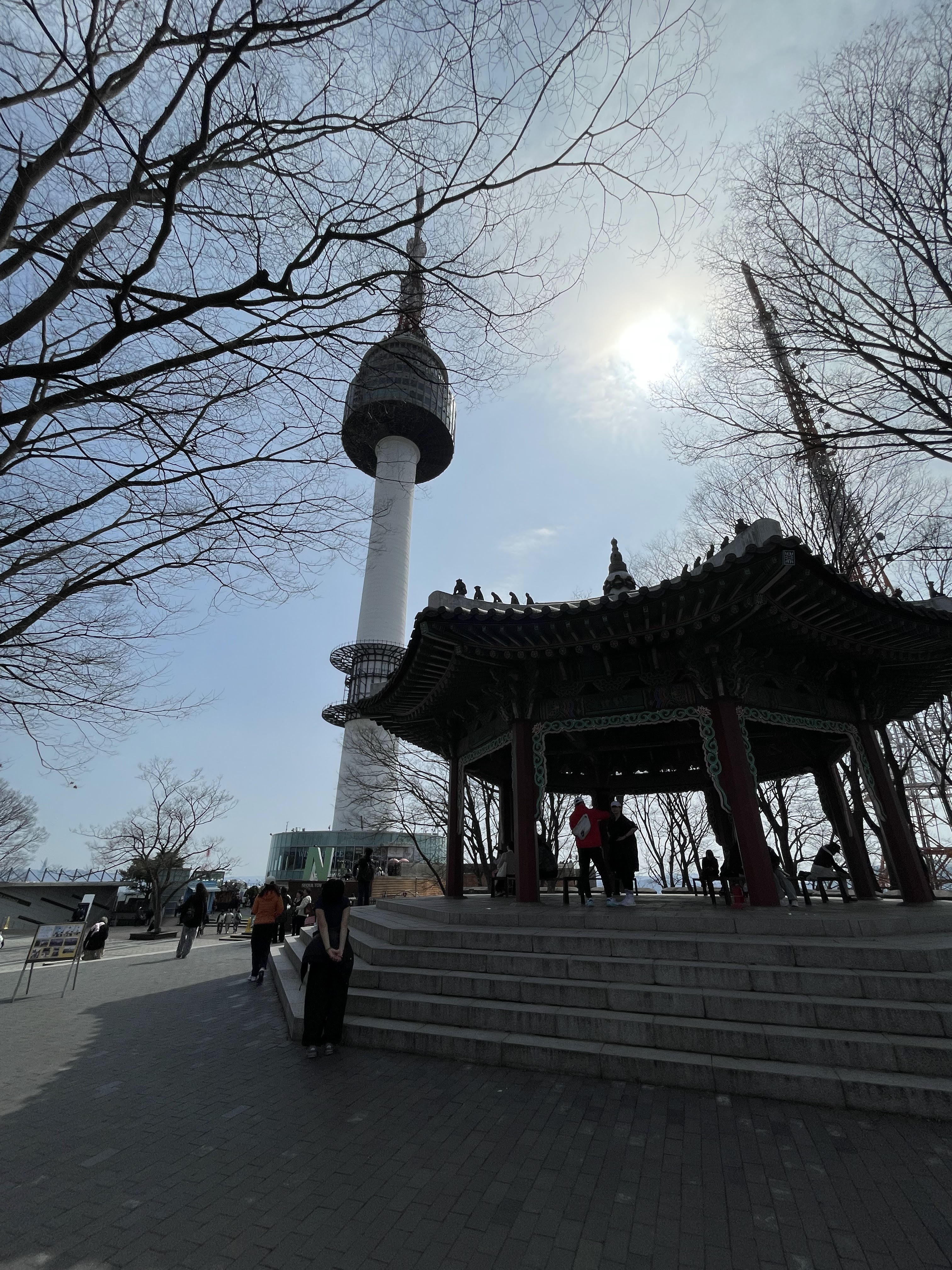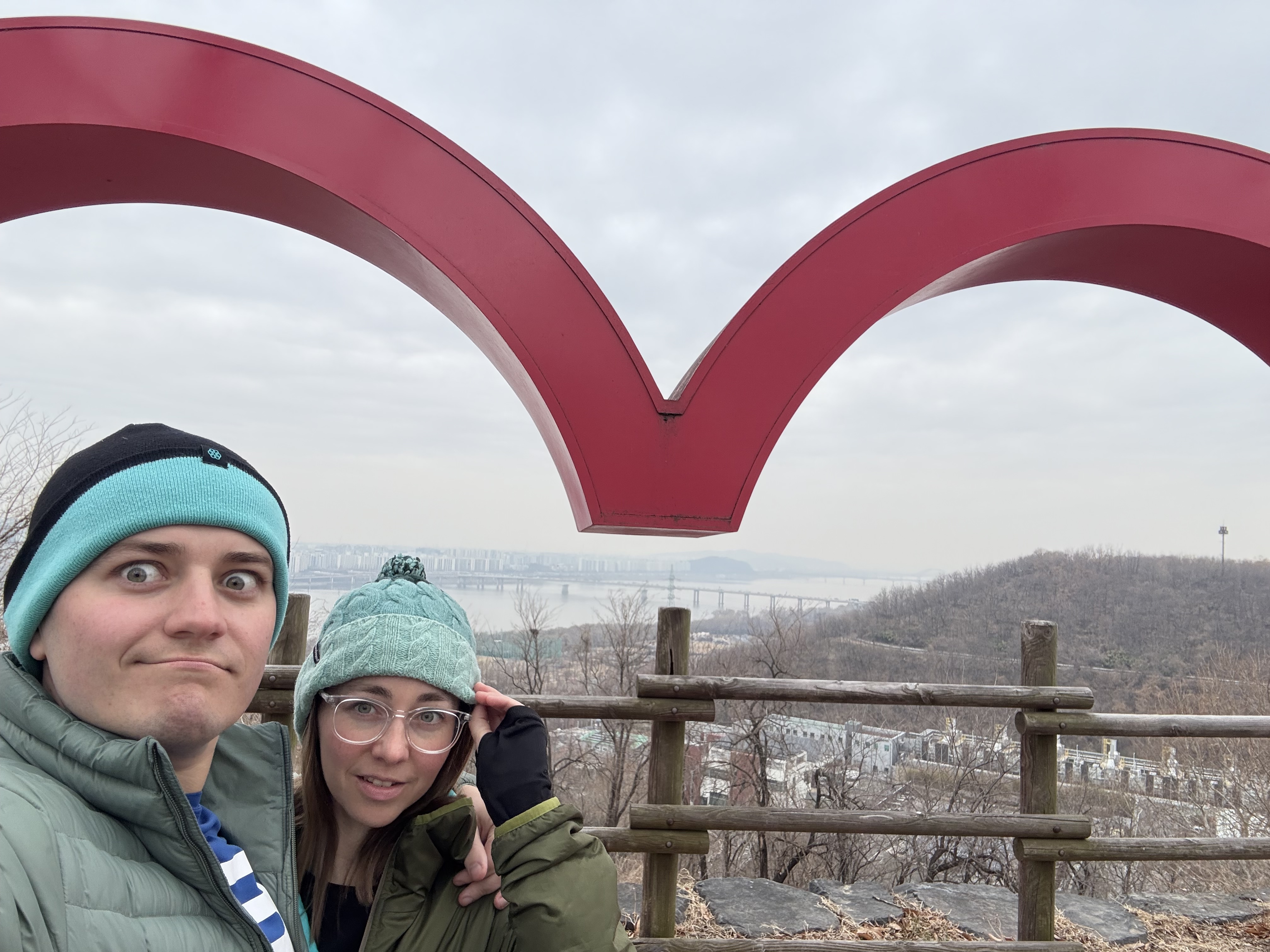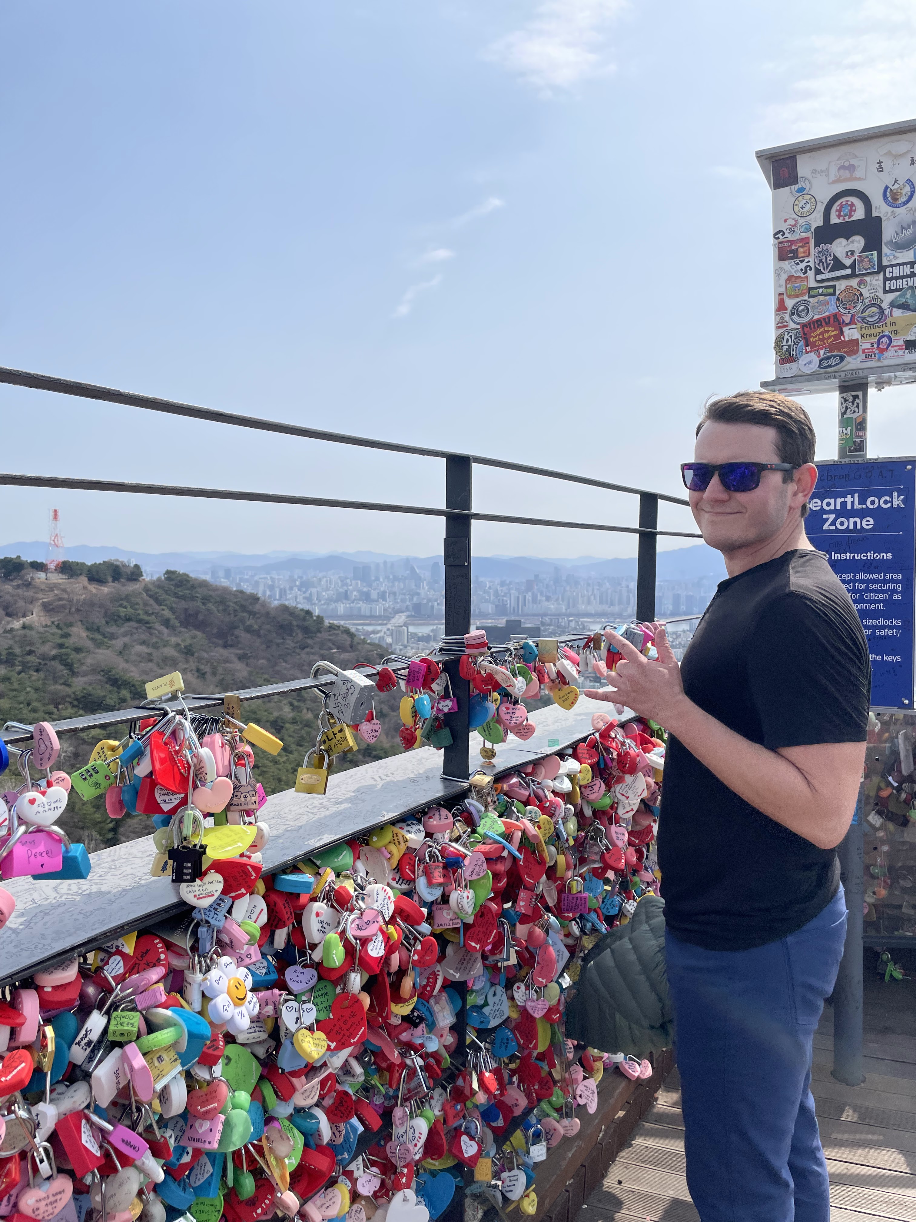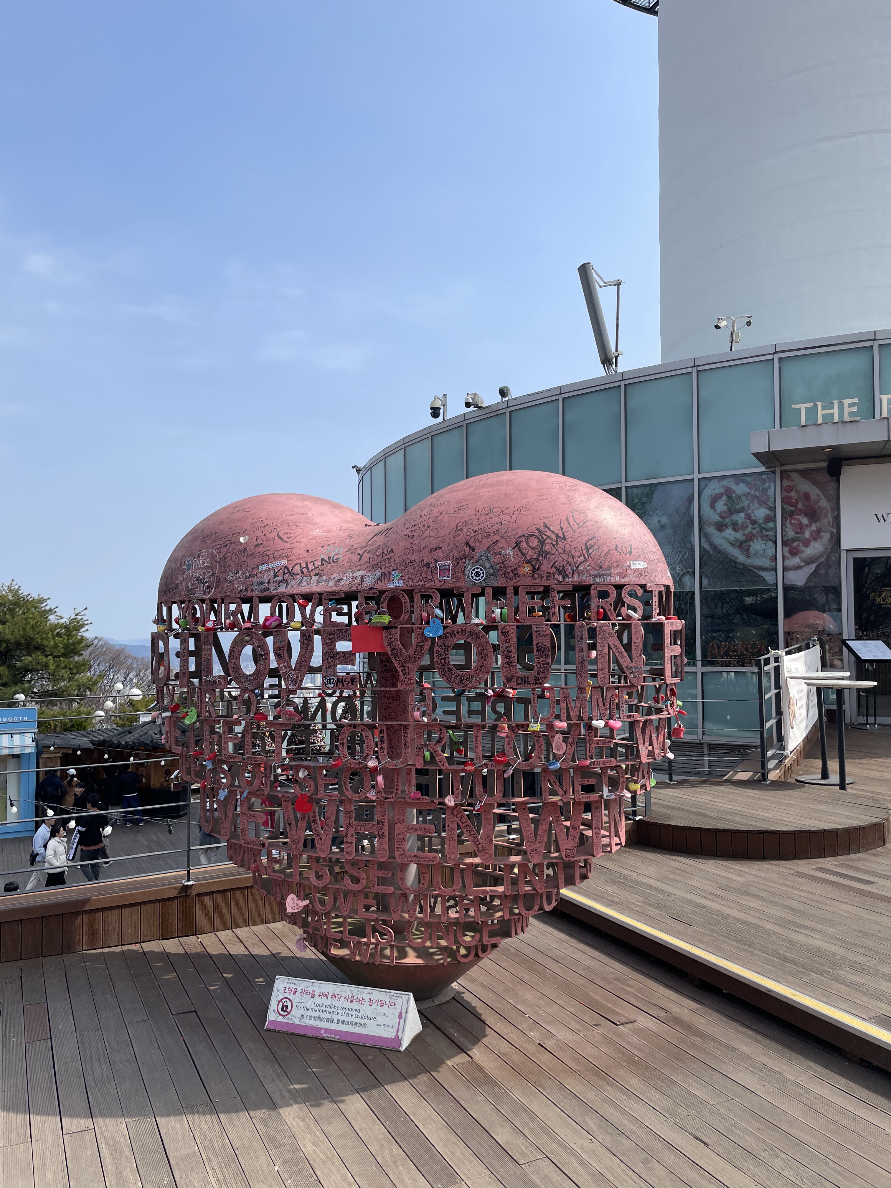 Our final full day in Seoul, we decided to finally get some actual physical activity by hiking up Namsan Hill in the city center. Hiking may be a bit strong of a term for what we actually did to summit the ~300m to the radio tower… it’s just stairs. Straight stairs for nearly 1000 vertical feet. Ouch. Nevertheless, it was a fantastic panoramic view of Seoul conveniently co-located with a 5-story mall much like most of the other attractions we had been to in the last few days. We saw that this is where couples like to put a lock on the fence around the tower, but either we were too tired or too unsure if this marriage will last after 12 years together to do the same…