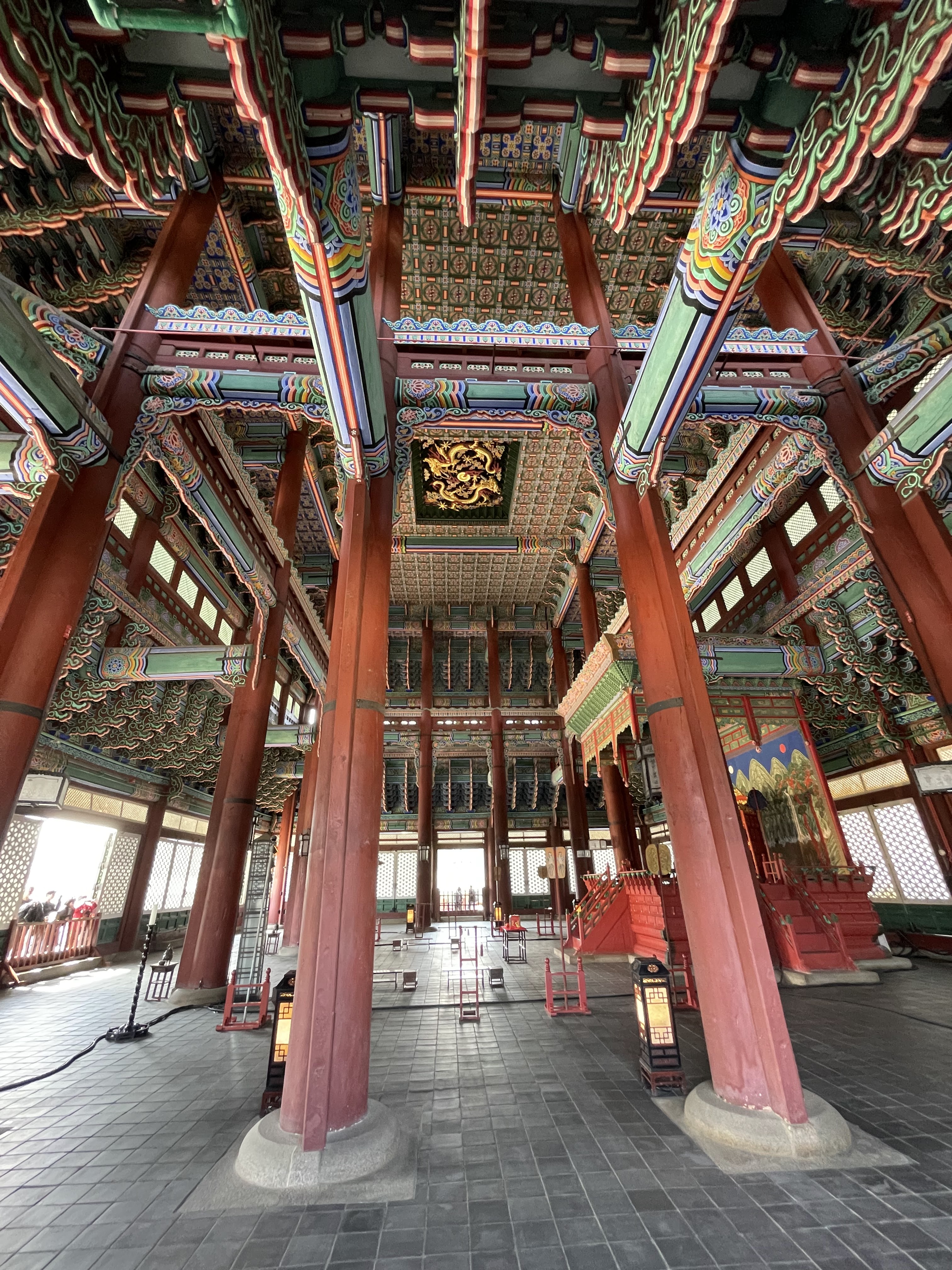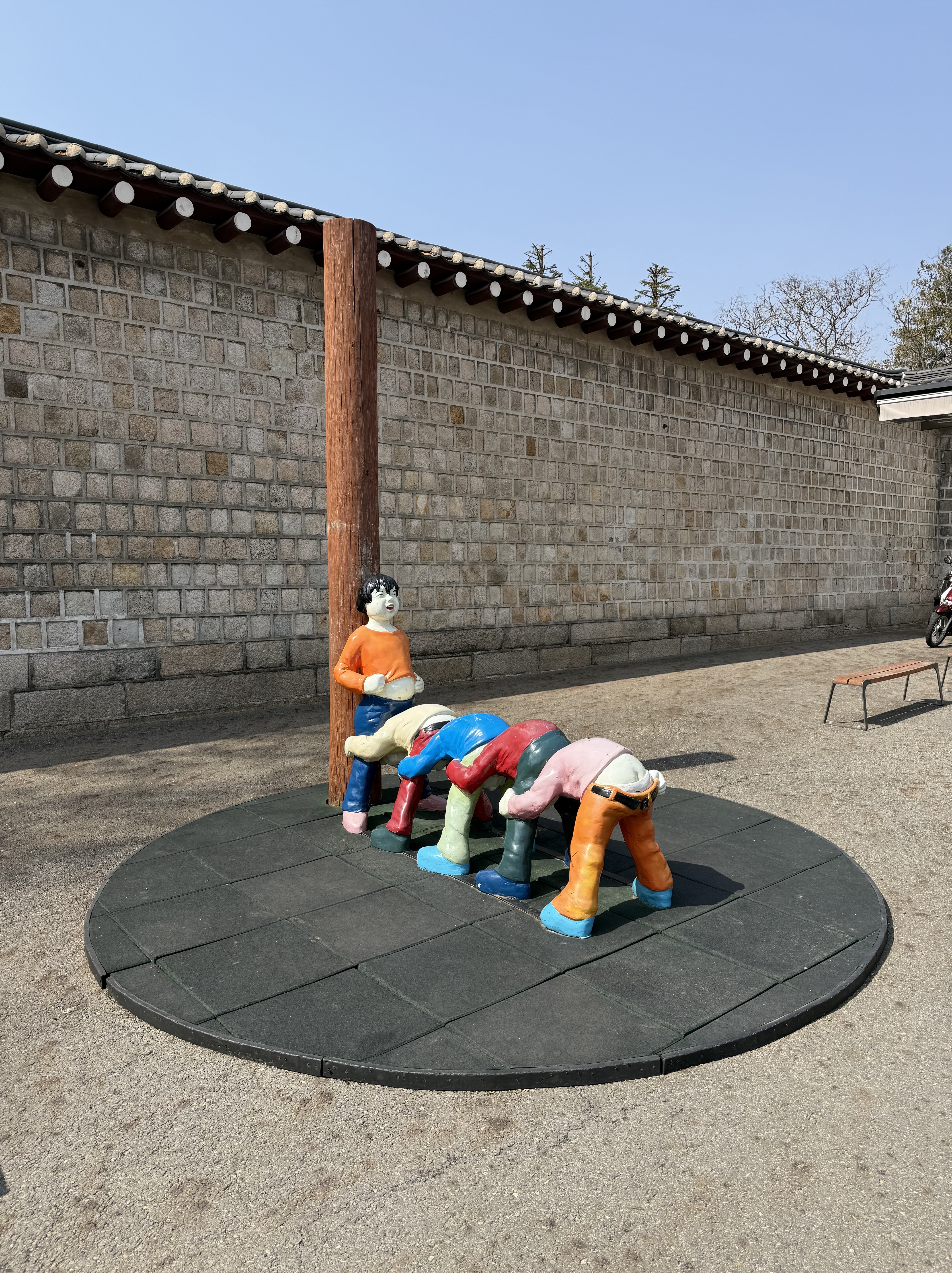 Our next day, we were quite rested and ready to travel around the city – first stop, palaces. Before we even got into the subway to head out there though, we made the amazing discovery that I had booked our place very close to an NFT Gallery – we didn’t go in on principle (I can’t think of a stupider activity to do on vacation…), but it was definitely a unique start to the day. From there we headed to both Gyeongbokgung and Changdeokgung, two palaces (of many apparently) in central Seoul. The first statue we saw was of a very strange kids game that apparently transcends cultures, the grounds of the palace were quite a delight to wander around. These palaces cover almost a thousand years of Korean history and painstakingly detail the Japanese atrocities committed at each location, during each century… Still a little bad blood it seems.